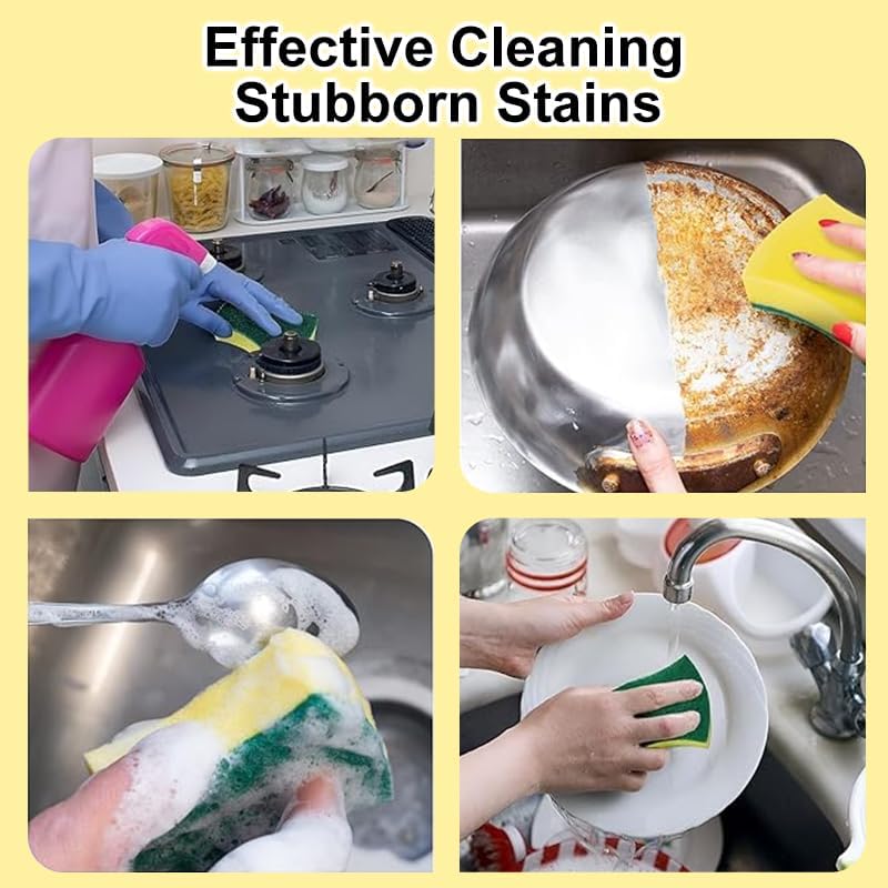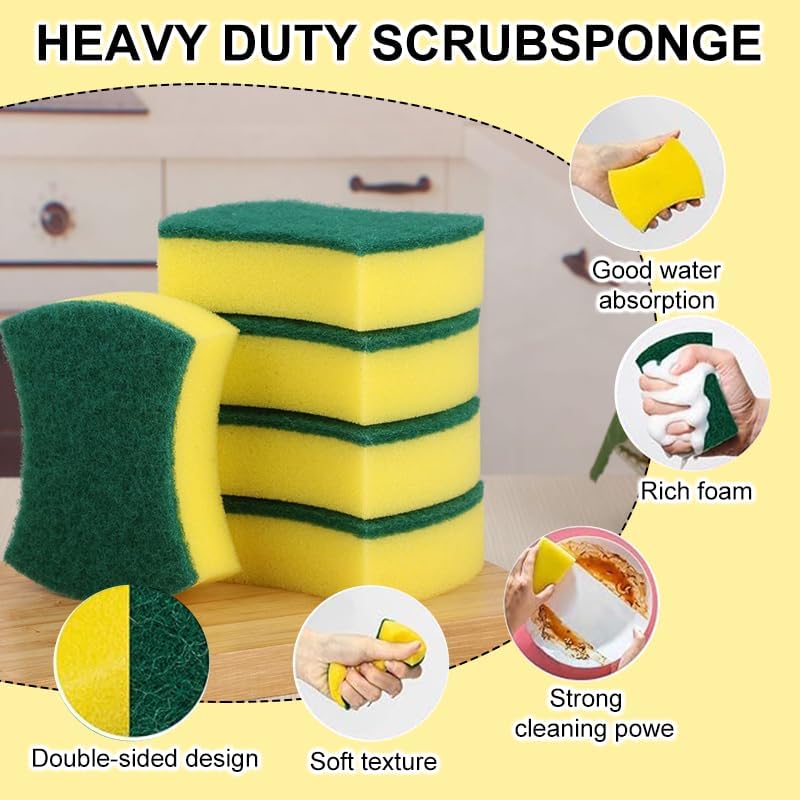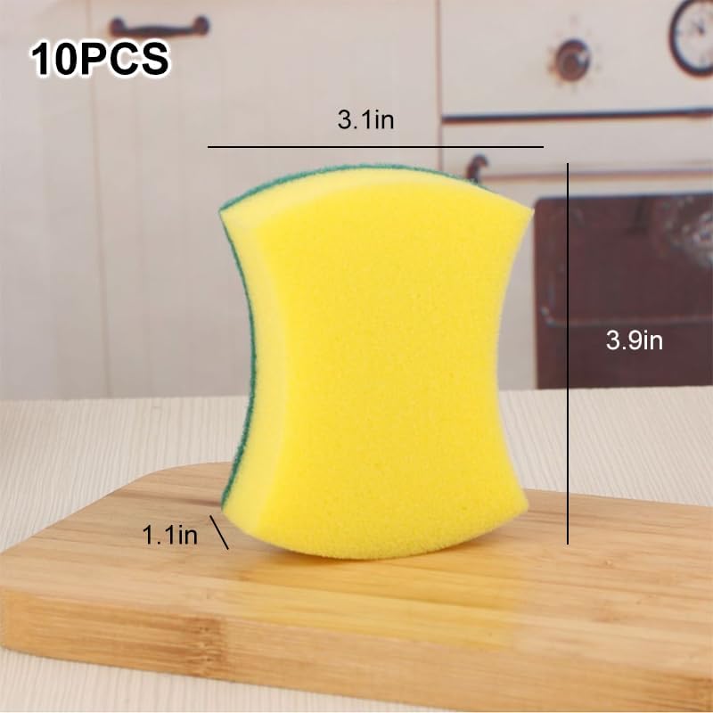 10Pcs Kitchen Cleaning Sponge, Heavy Duty Cleaning Dish Scrubber Sponge for Home Kitchen, Dual Sided Non-Scratch Sponges for Washing Dishes, Pots and Pans