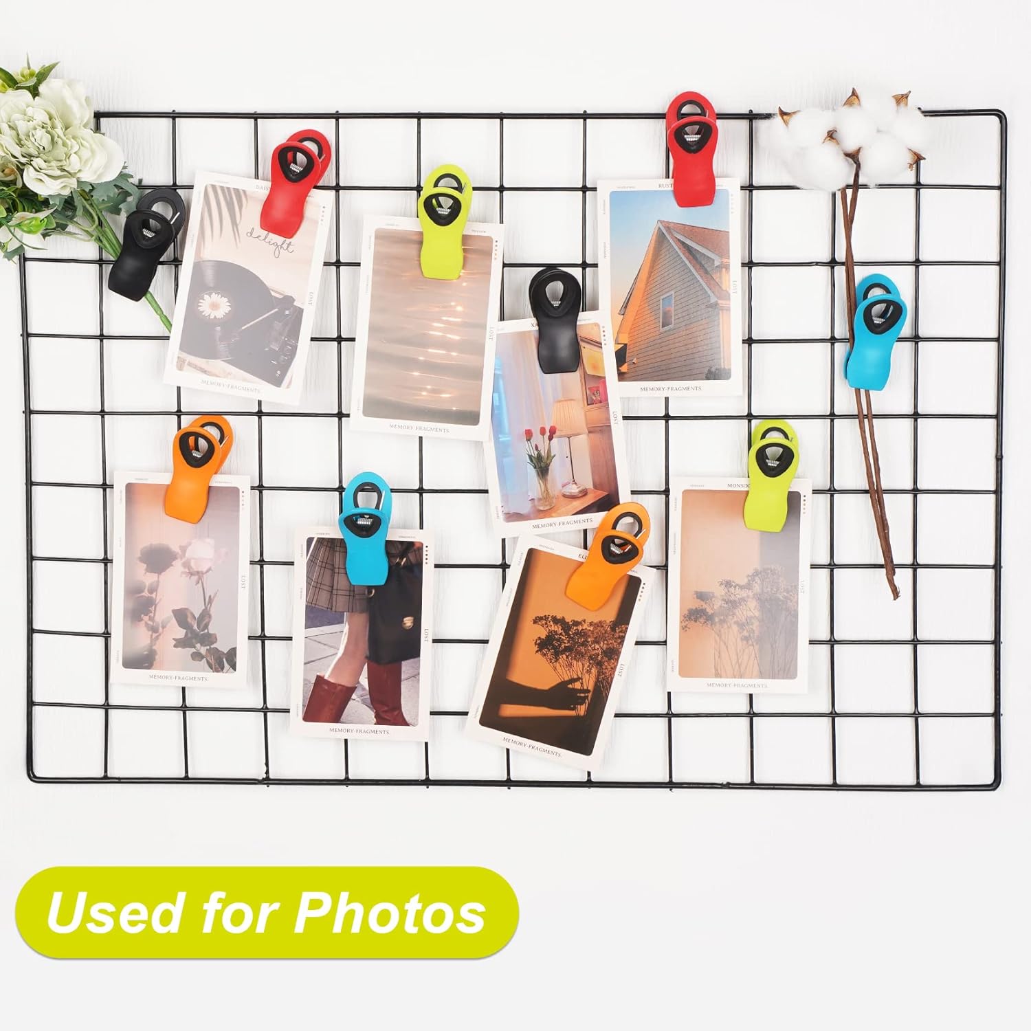 Colorful Chip Clips: Includes 12 clips in a variety of vibrant colors such as red, blue, green, orange, black, pink, light blue, white, yellow, and gray. Each clip features a round hanging hole for creative storage or display. Bright colors make them easy to spot and fun to use in any kitchen—perfect for moms or anyone who loves a tidy, cheerful space.