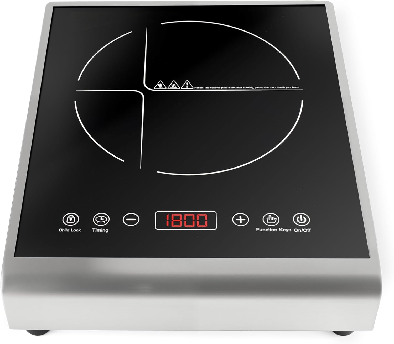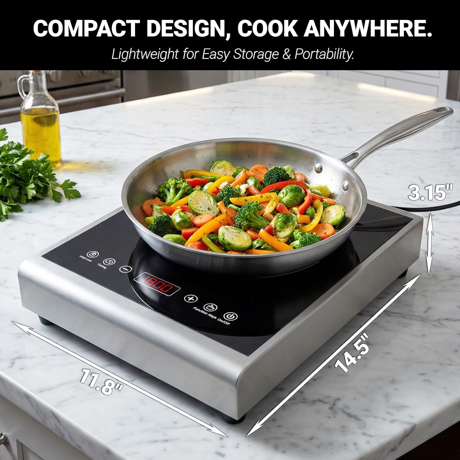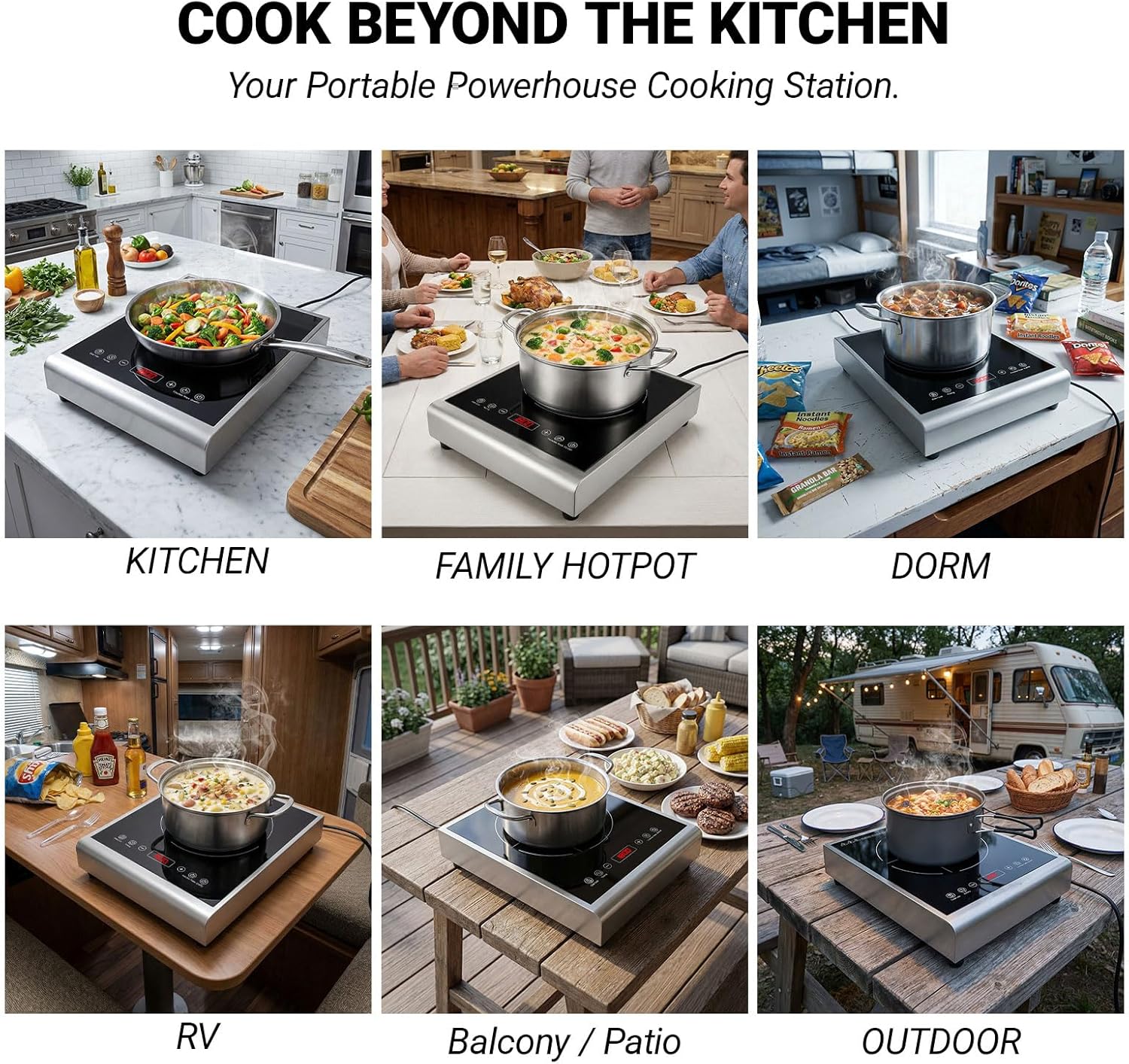 [Stable Continuous Heating] This 1800W portable induction cooktop delivers steady, continuous heat even at low power, allowing food to simmer or melt smoothly without the frequent heat cycling commonly found in pulse-heating induction burners. This stable heating behavior helps reduce the risk of scorching during low-heat cooking, making it suitable for both beginners and experienced cooks who need consistent heat for simmering, melting, and other gentle cooking tasks.
