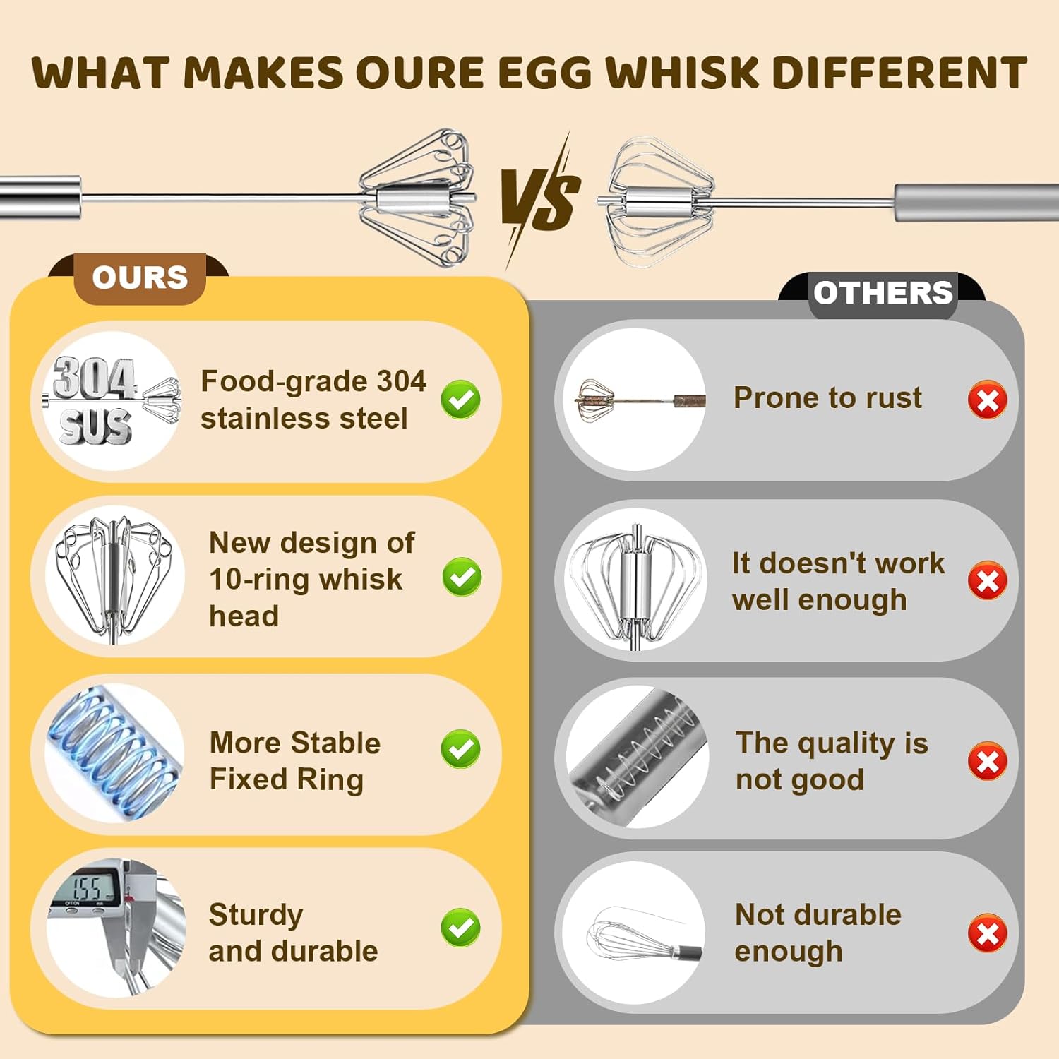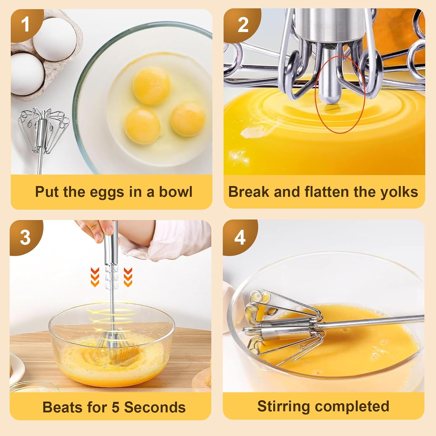 2025 New Upgraded Stainless Steel Semi-Automatic Whisk – Easy to Use Whizzy Whisk,Versatile Wisker Tool for Cooking,Kitchen Essential Egg Beater for Baking,Whisking,Beating & Stirring (10in)