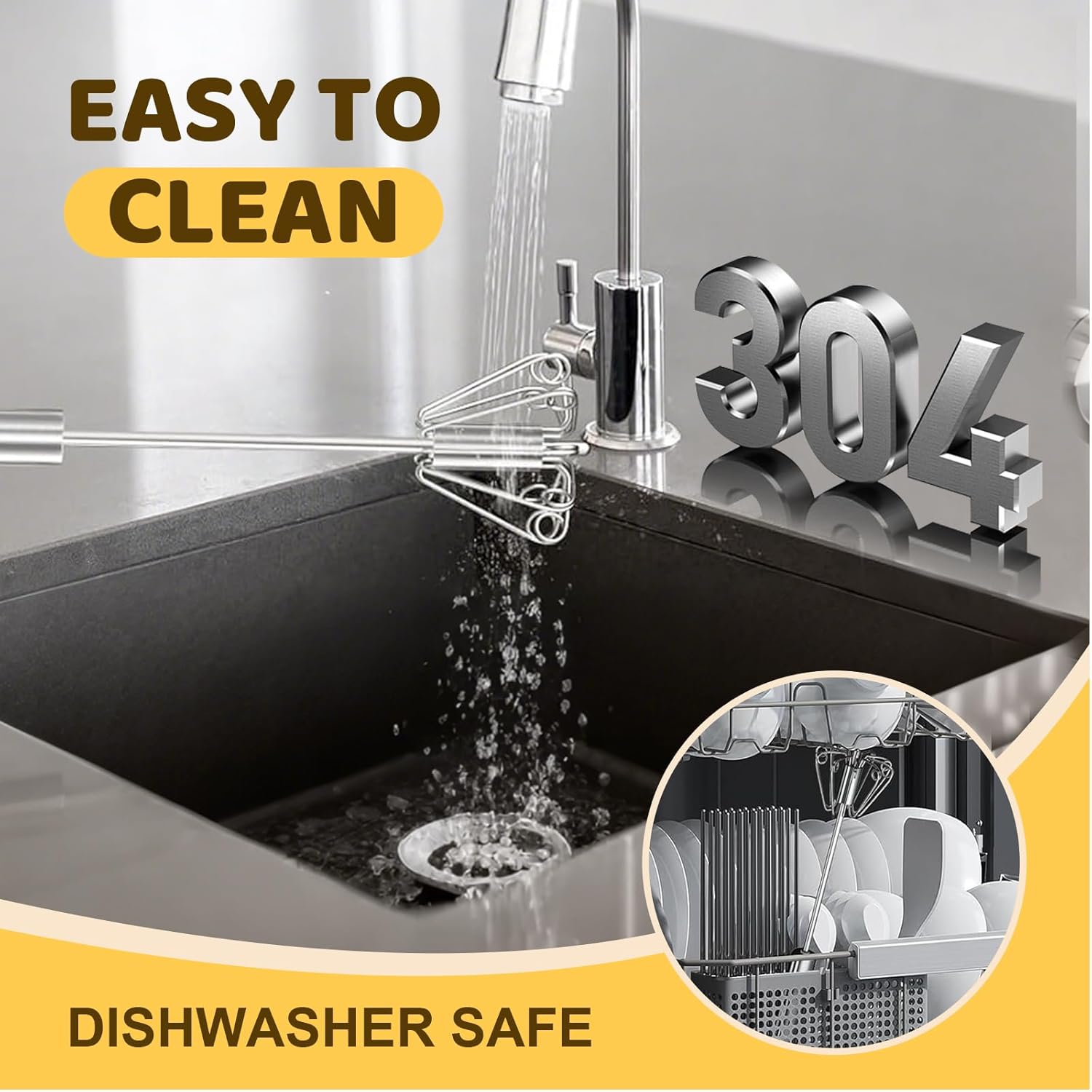 【Easy to Clean】Our push whisk can be cleaned in the dishwasher or directly in soapy water, easy to clean every time. The additional hook function makes storage and access easier, making your kitchen more tidy and organized.
