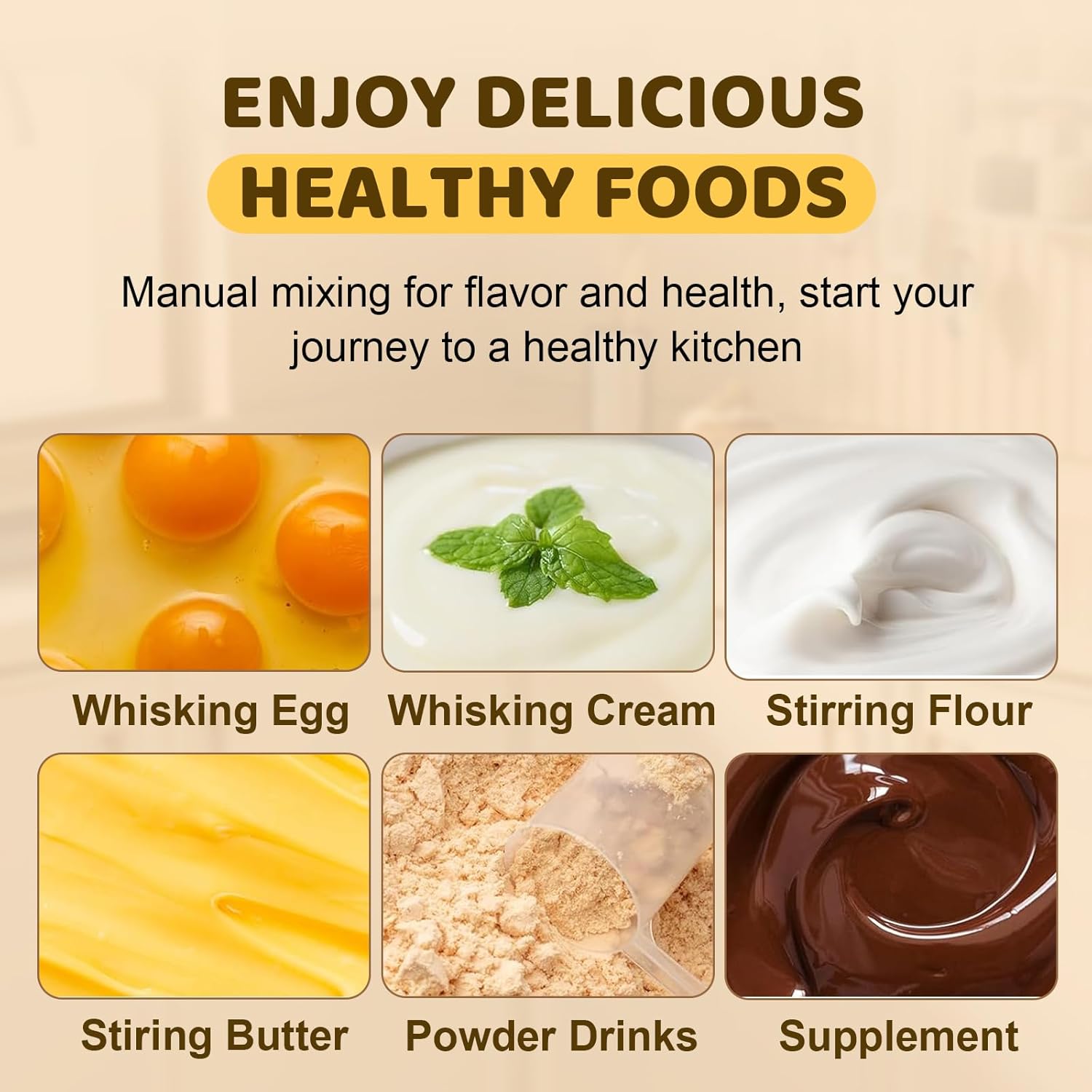 【2025 New Design】Newly upgraded double bearing transmission structure, smoother mixing, with durable steel wire spring and golden angle design, the handle is sturdy and not easy to collapse, continuous use will not feel fatigue!