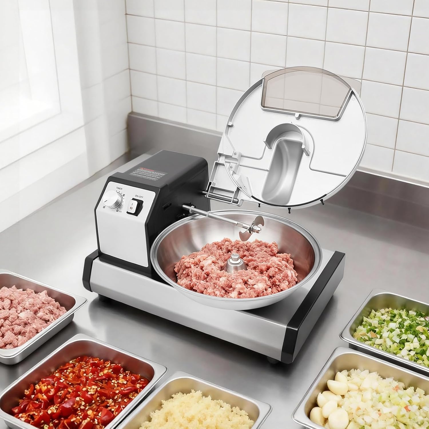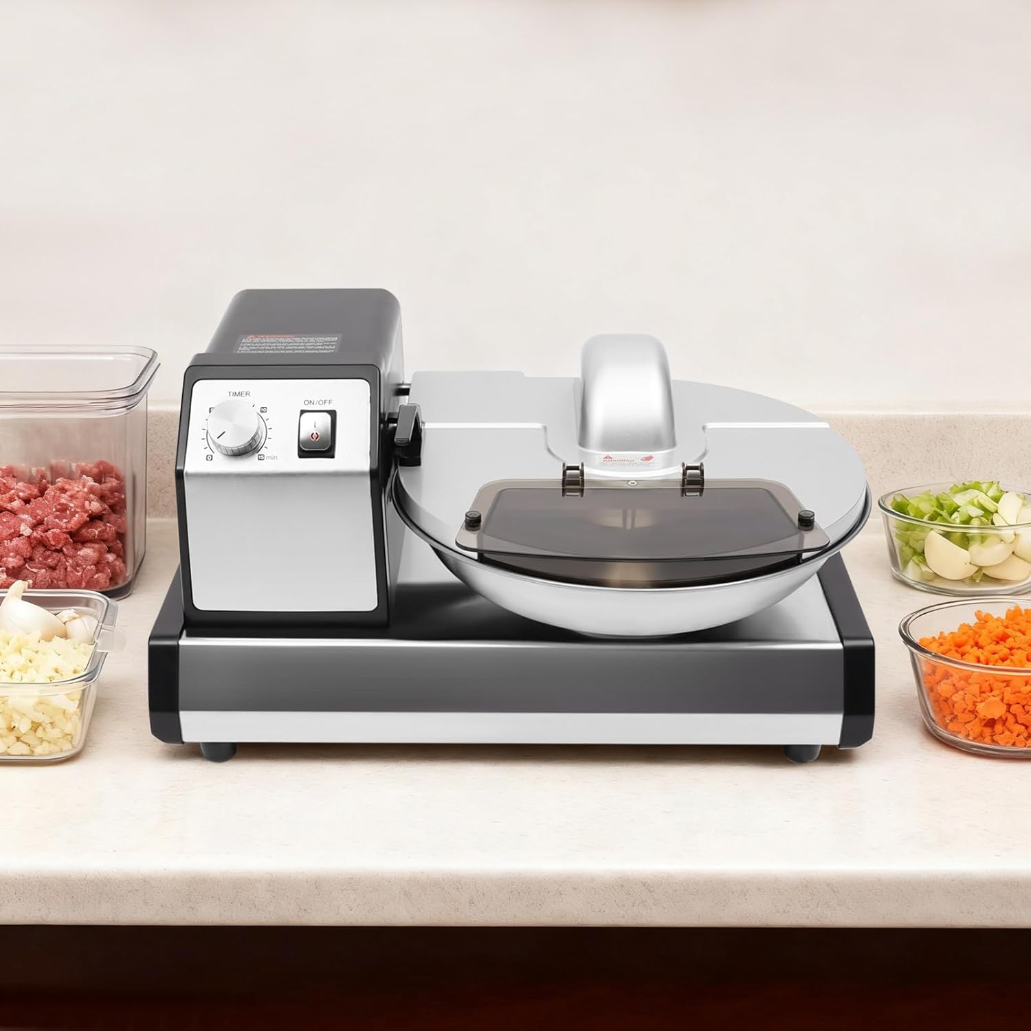 Stable & Versatile Performer: Equipped with non-slip foot pads to protect countertops and ensure steady operation. Perfect for preparing meat fillings, purees, chopped vegetables, and sauces in settings like dumpling shops, cafes, canteens, and large family gatherings