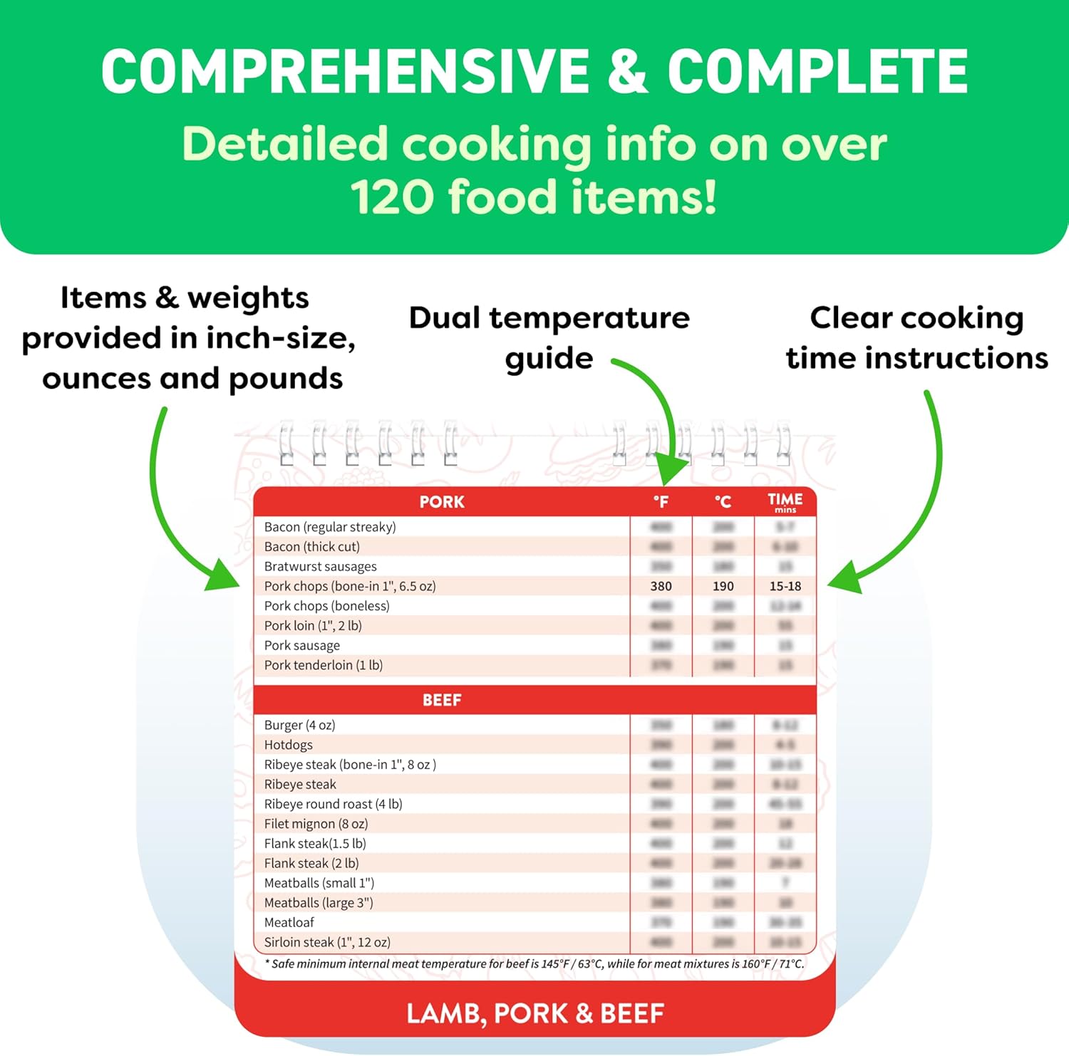 Air Fryer Cookbook for Beginners and Experts with Color-Coded Tabs, Bold Fonts, and Both Celsius & Fahrenheit Readings. Designed for real kitchens, this handy cooking gifts booklet helps eliminate guesswork and improves cooking accuracy with clear magnetic cheat sheet instructions. Whether you’re a busy parent or prepping healthy meals, this kitchen gadget simplifies air fryer use and makes an ideal gift-worthy kitchen must haves 2026.