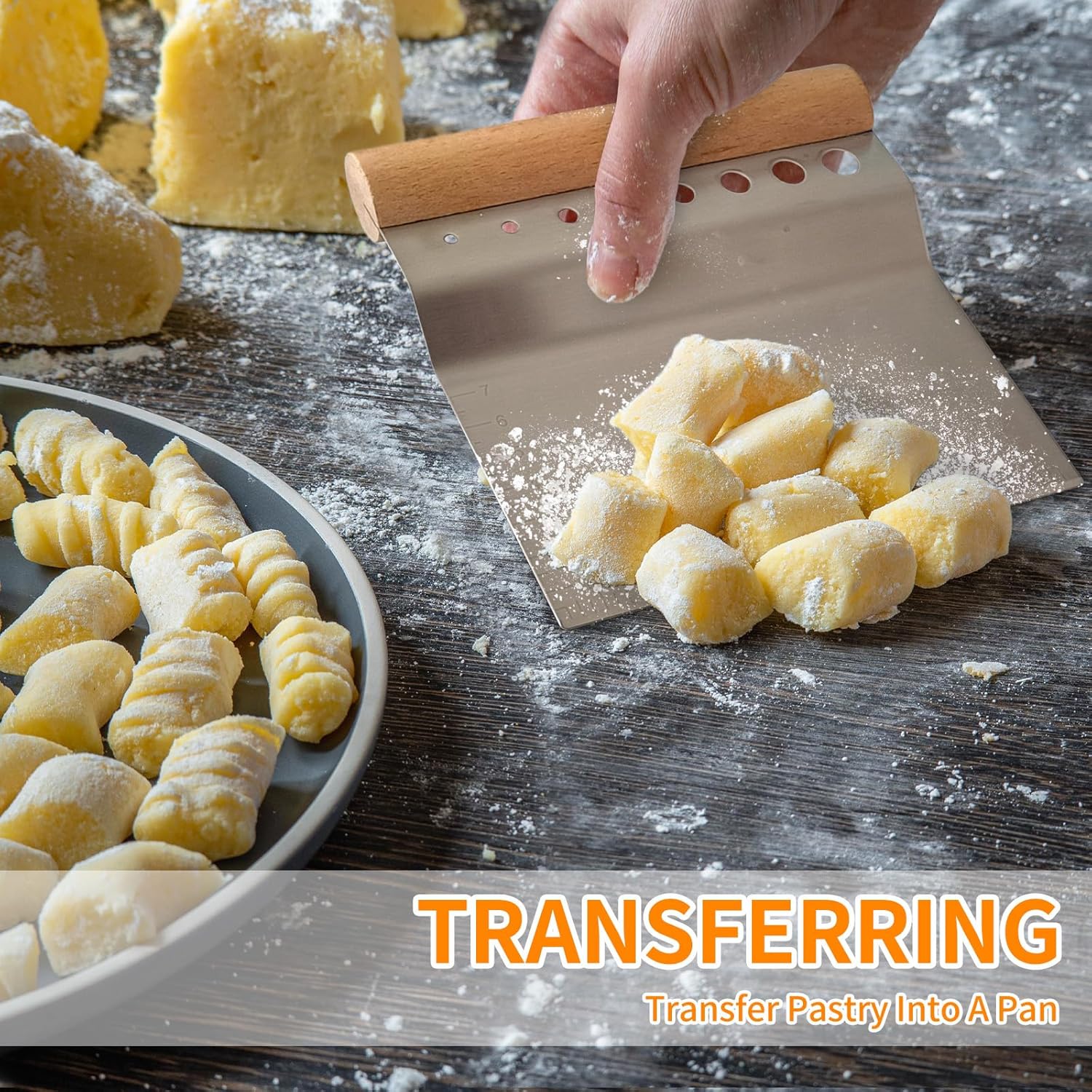 Outstanding Material:The blade of our bench scraper is made of 304 food-grade stainless steel, ensuring the utmost safety and durability. Uniquely designed metal cutter with ergonomic wooden handle, providing enhanced grip and control. Kindly refrain from using in hot environments.