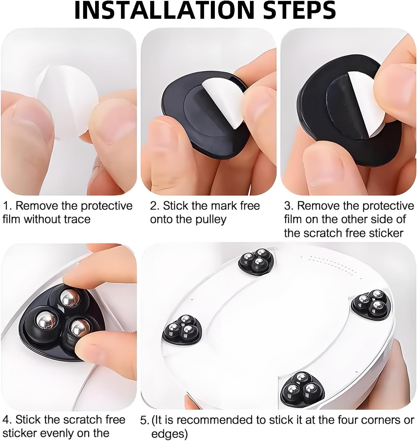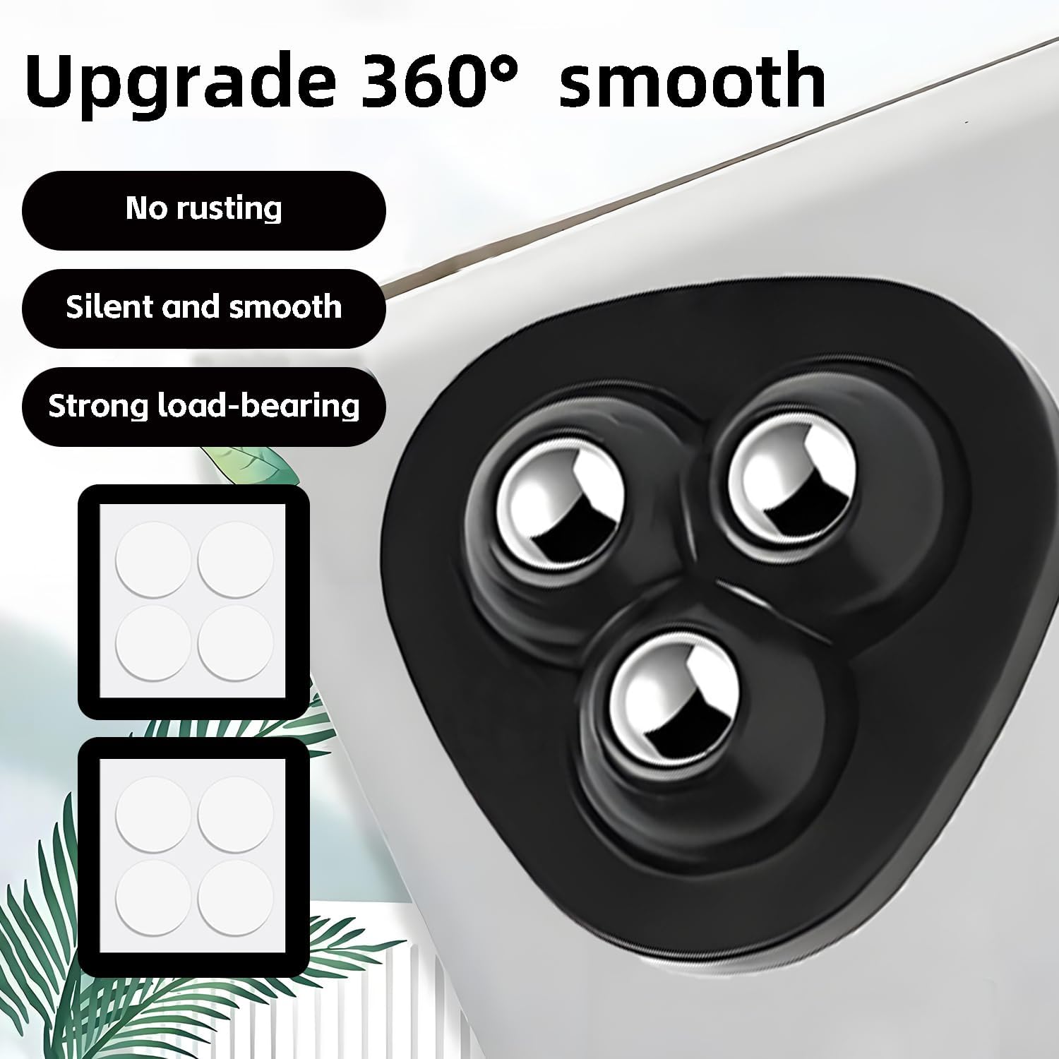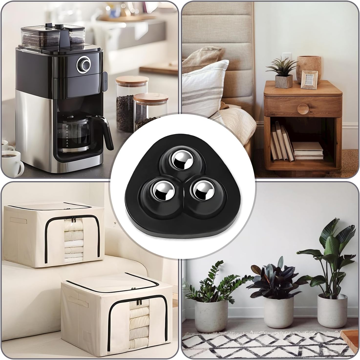 Enhanced Load Capacity & Durability – Designed with an upgraded triangular structure and 3 stainless steel balls, with self adhesive caster wheels, 4 wheels can carry 55 lbs. Our furniture wheels ensure stable weight distribution and support heavy appliances like Kitchen stand mixers. The reinforced wheelbase guarantees long-lasting performance