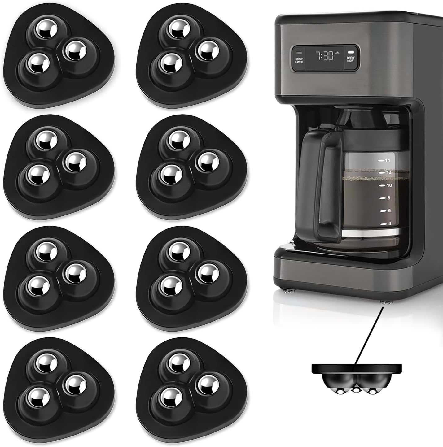 Space-Saving & Multi-Pack Convenience – With a compact design that adds minimal height, these rollers are perfect for tight spaces. The set includes 8 pcs appliance slider, allowing you to use them on multiple appliances or furniture pieces, keeping your countertop clutter-free and organized