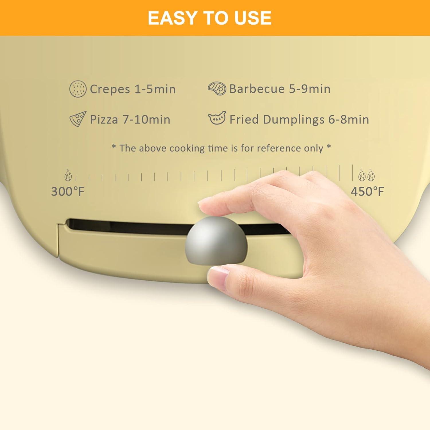 The pancake maker has honeycomb texture mesh & Non-Stick Coating. It makes the oil drops distributed evenly, and the pancake is easy to turn over and fry without sticking. It can be cleaned easily with a wipe.
