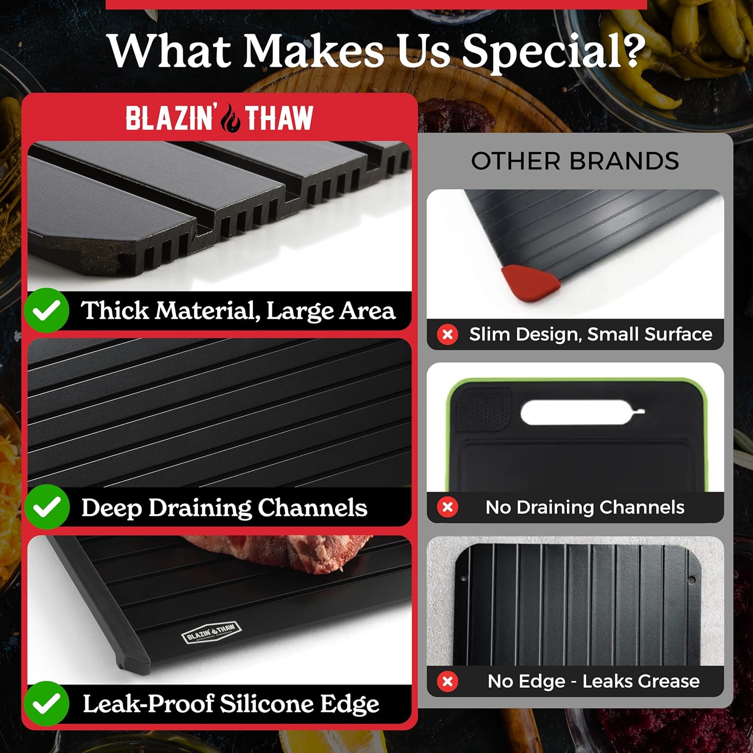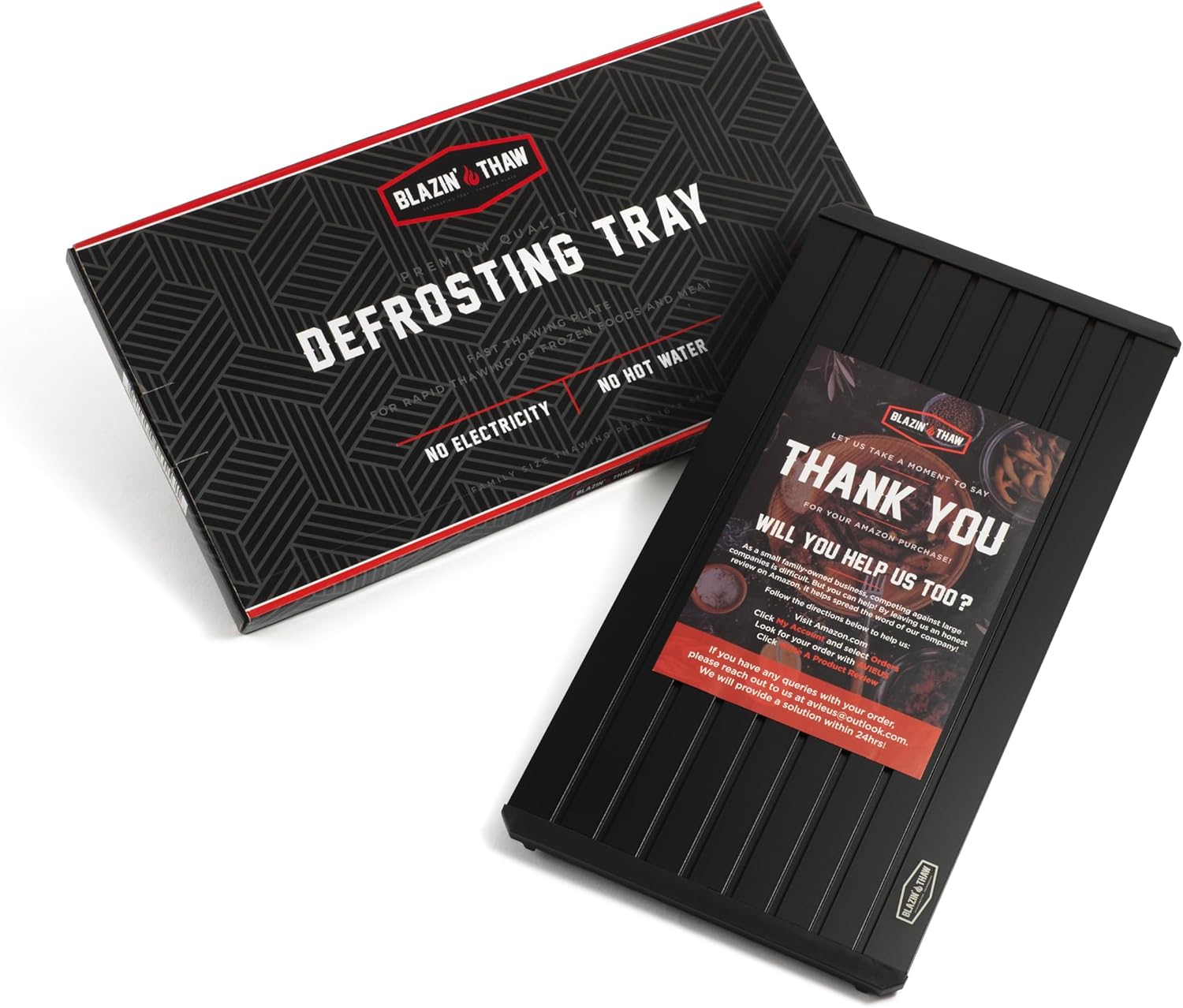 BLAZIN’ THAW Defrosting Tray for Frozen Meat | 16″ Family-Size | Aluminium Plate for Thawing Frozen Food | Natural Thawing Process | No Microwaves, No Cold/Warm Water Required |