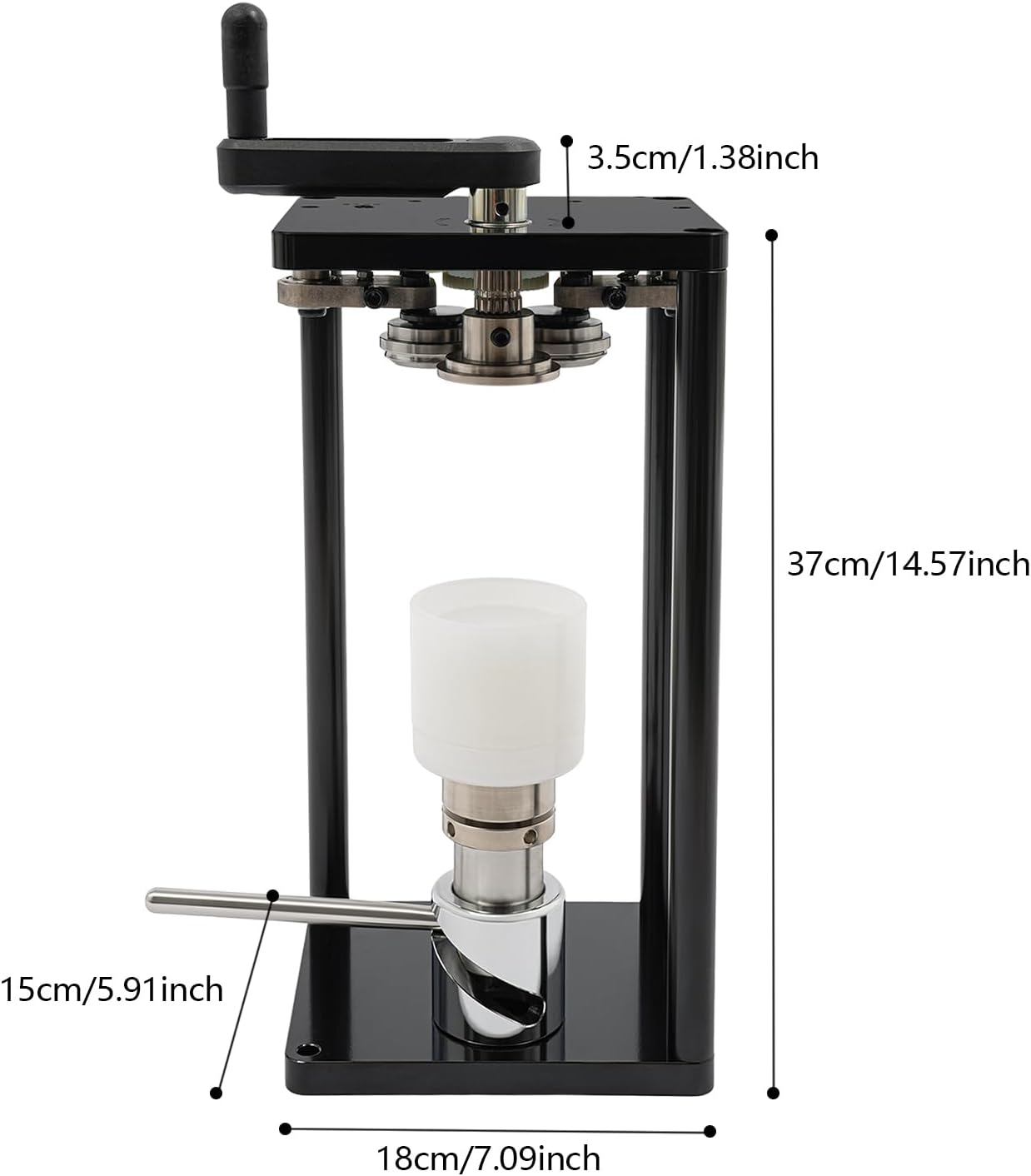 Color: Black Style: Modern Shape: Rectangle Material: Stainless Steel Mounting Type: Tabletop Assembly Required: Yes Operation Mode: Manual Applicable Materials: Aluminum/PET Cans Can Sealing Diameter: 55 mm/2.17in Can Sealing Height: 115mm/4.53in(330ml/11.16oz); 168mm/6.61in(500ml/16.91oz) Can Sealing Speed: 10 Pcs /min(For Reference) Product Size: 18*15*37cm/7.09*5.91*14.57in Package Size: 48*25*20cm/18.9*9.84*7.87in Gross Weight: 11kg/24.25 lbs Net Weight: 10.45kg/23.04 lbs