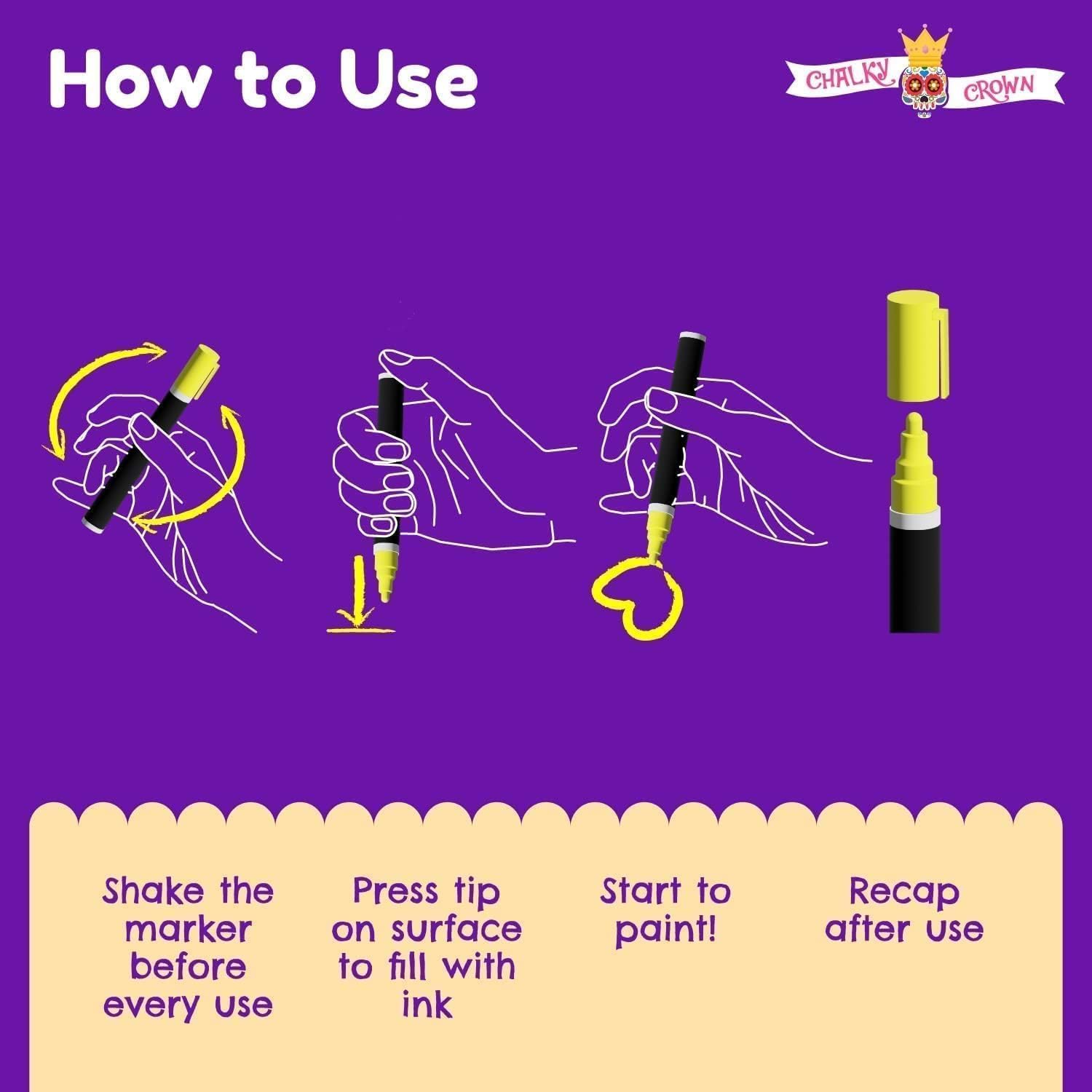 Bright Colors – Comes with 4 extra bold chalk markers to last a long time