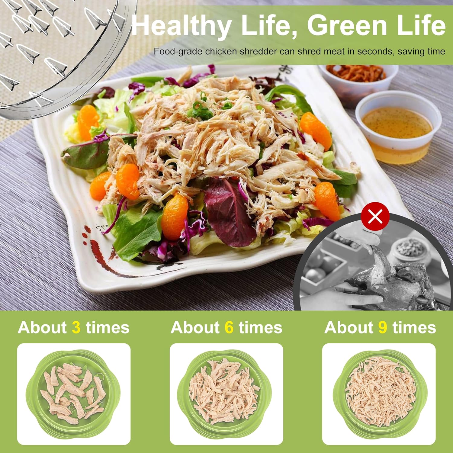 Chicken Shredder Large Chicken Breast Shredder Tool Twist with Brush&Fork, Visible Meat Shredder Machine, Anti-Slip Strip, Ergonomic Handle, BPA Free, Pork Beef Chicken(Matcha)