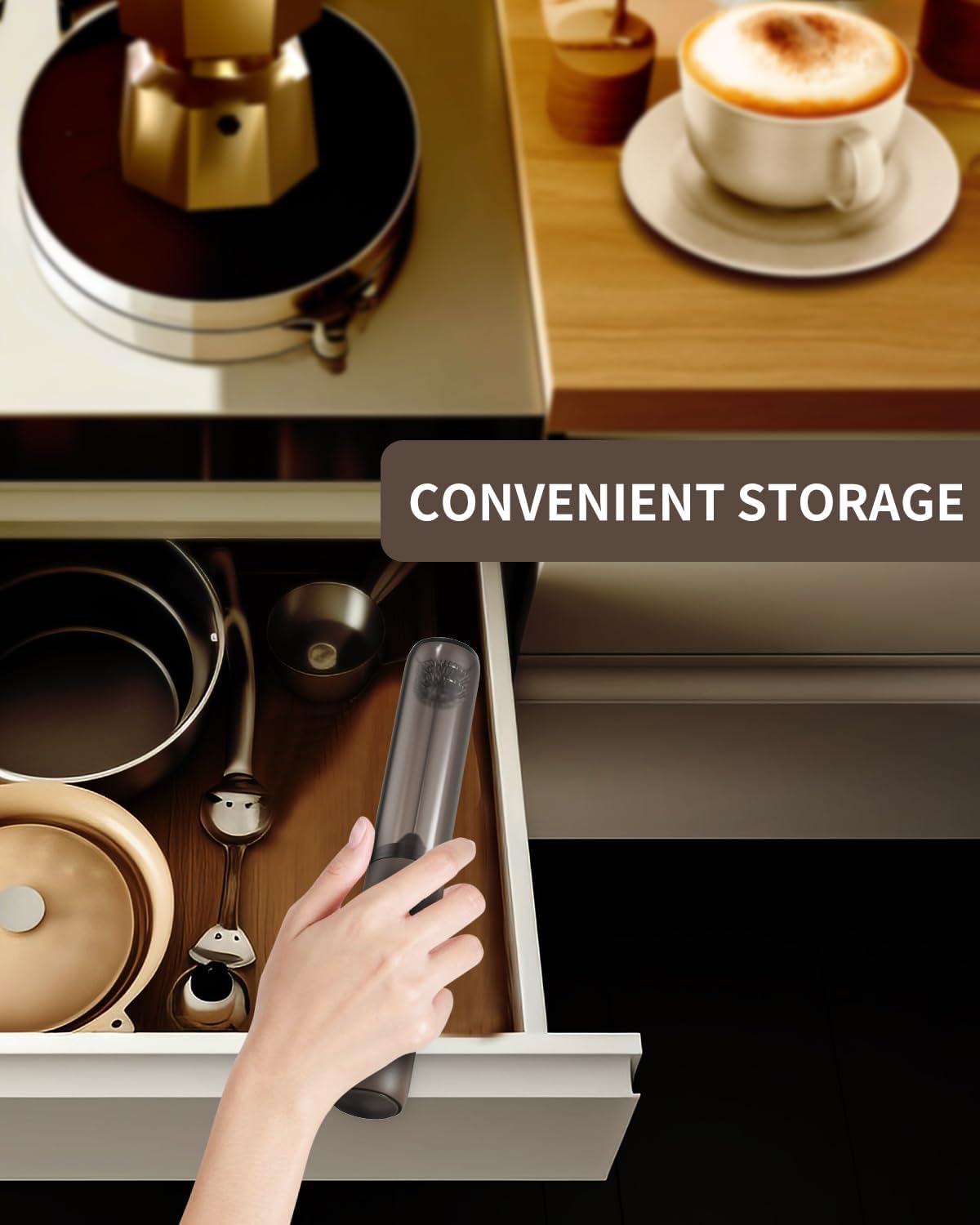 EASY TO STORE AND CARRY: This electric milk frother features a storage tube to protect against dust and keep the whisks clean. Its lightweight and portable design allows you to easily carry it in your bag for use in hotels, offices or outdoor settings
