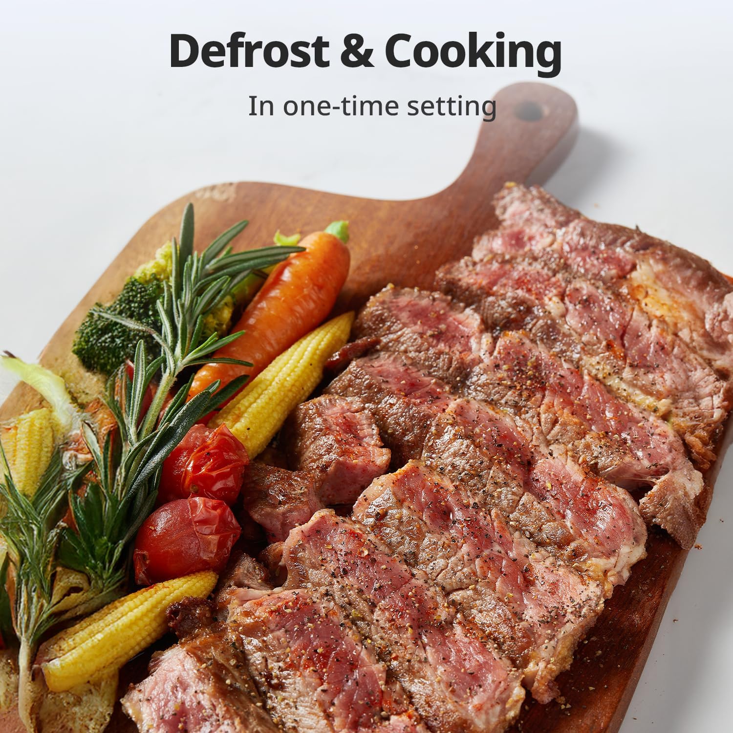 One touch express cooking function with 1-6 minutes and plus30 seconds functions, and two defrost settings (by weight or by time)