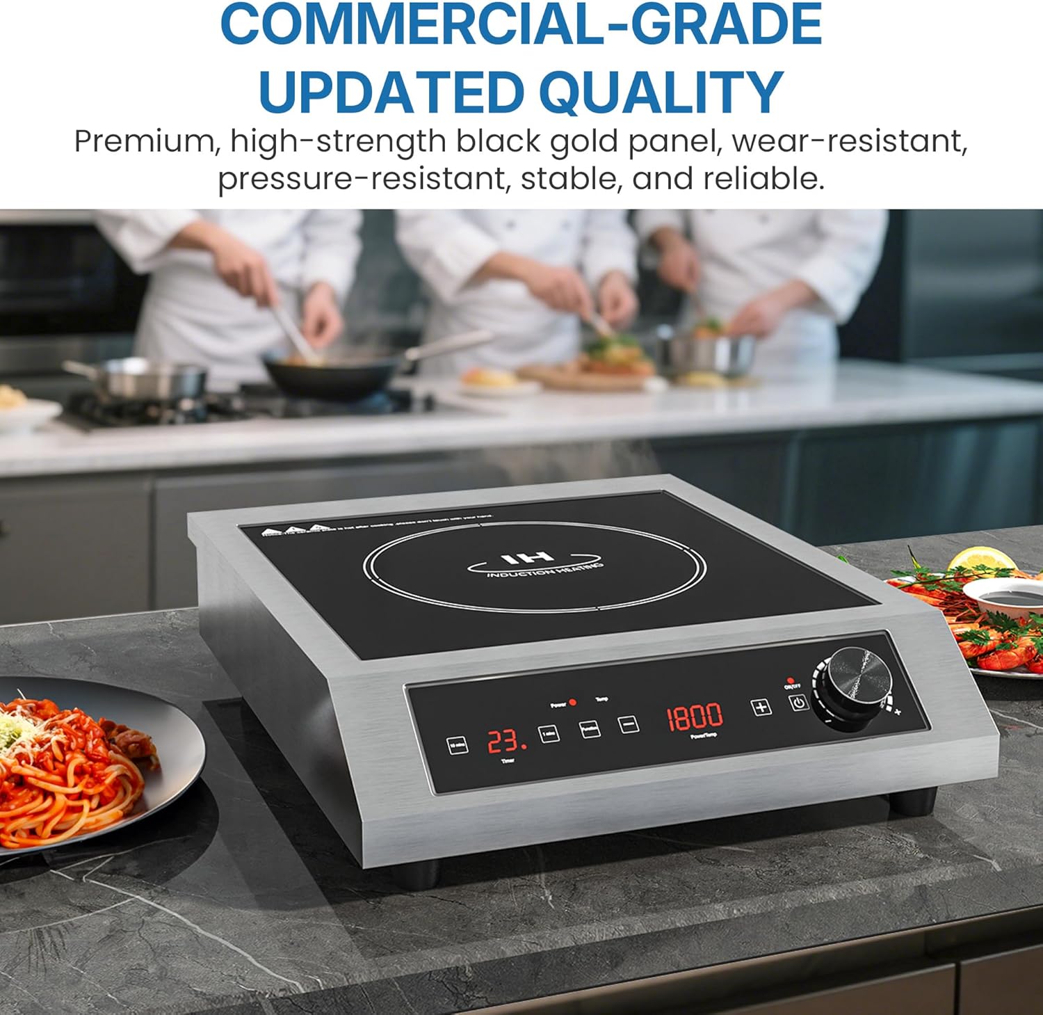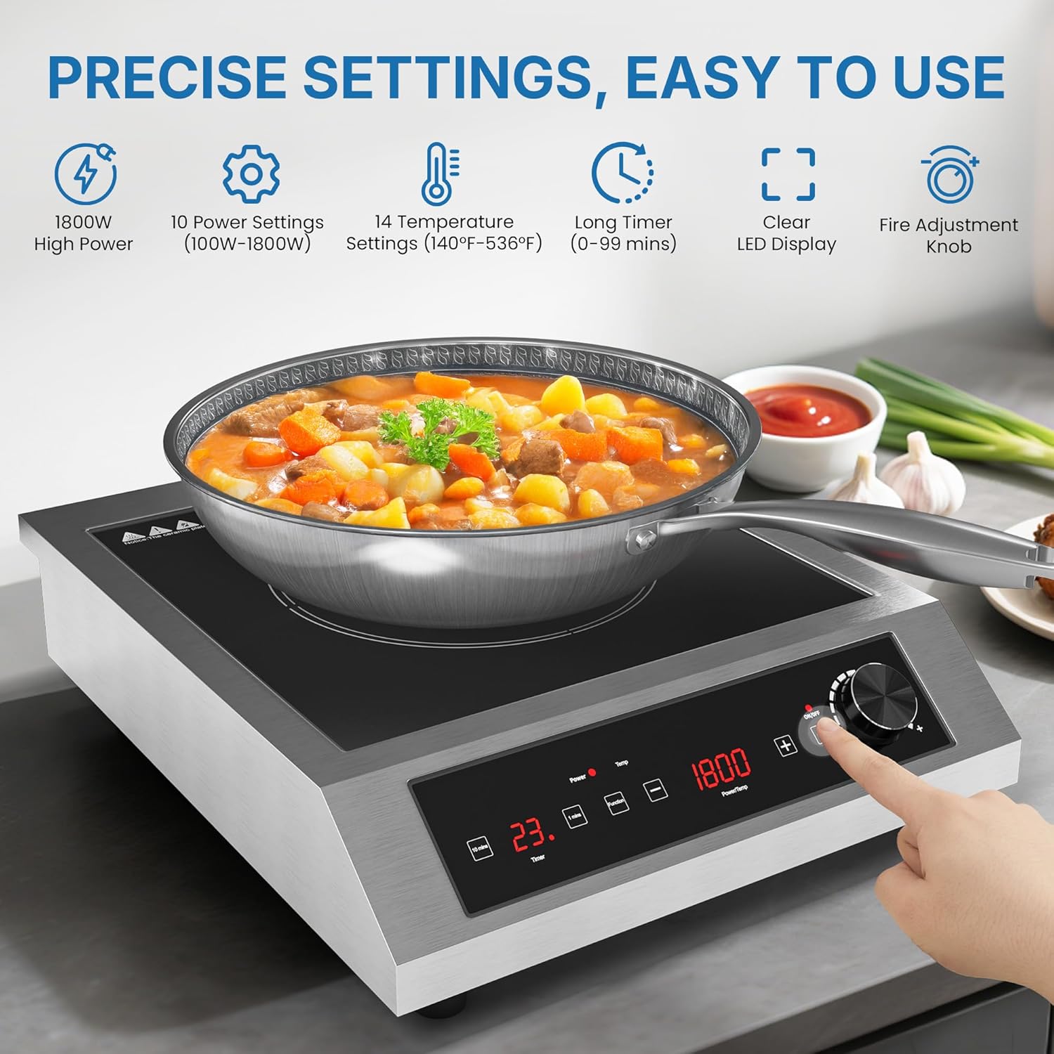 Easy to Use: This induction cooker is designed for simplicity with a clear LED display and easy-to-use controls. Adjusting time and temperature is effortless, and the 0-99 mins timer offers great flexibility for long cooking sessions, minimizing the need for constant monitoring and helping to reduce labor costs.