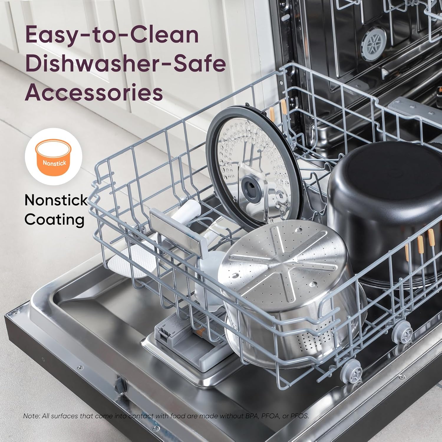 𝗘𝗮𝘀𝘆 𝘁𝗼 𝗖𝗹𝗲𝗮𝗻: All accessories including non-stick ceramic inner pot and removable lid are dishwasher-safe