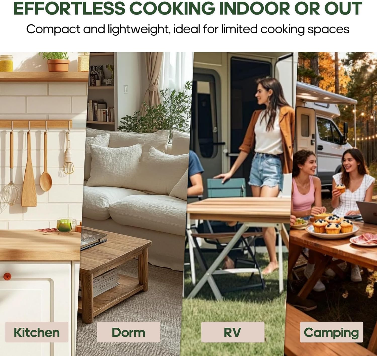 【COMPACT, PORTABLE & VERSATILE COOKING ANYWHERE】Free up counter space! This unit’s compact and lightweight design makes it the perfect extra burners for cooking for small kitchens, dorm rooms, offices, RVs, camping, or outdoor events. It’s your go-to portable cooking solution.
