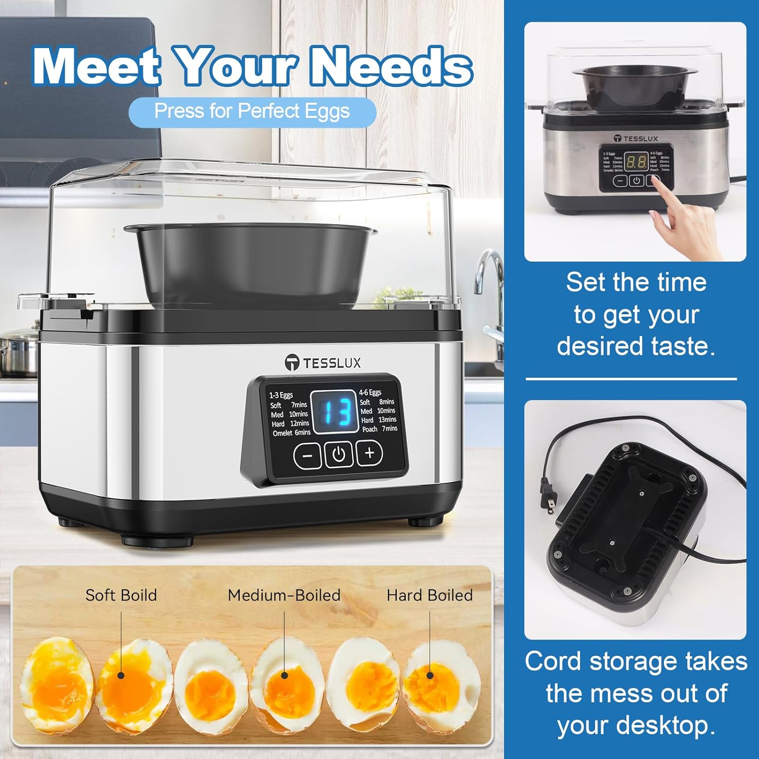 【1-Year Warranty Egg Cooker with Reliable Support】Backed by Tesslux’s comprehensive 12-month warranty and dedicated customer service team. Enjoy worry-free cooking with guaranteed product quality and technical assistance.