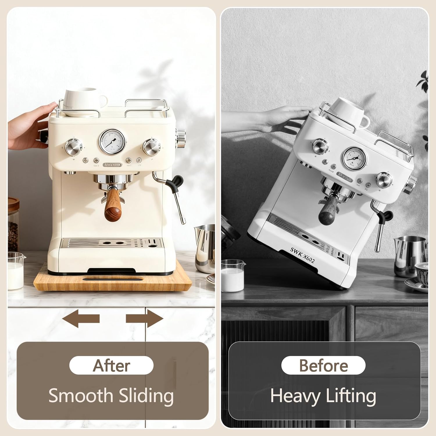 【Effortless Appliance Movement】— Our appliance slider allows you to move your kitchen appliance smoothly across the countertop without heavy lifting or straining. Equipped with smooth-gliding wheels, this sliding tray simplifies daily kitchen appliance handling, keeps your workspace organized and helps maintain a neat kitchen while maximizing counter space and convenience.