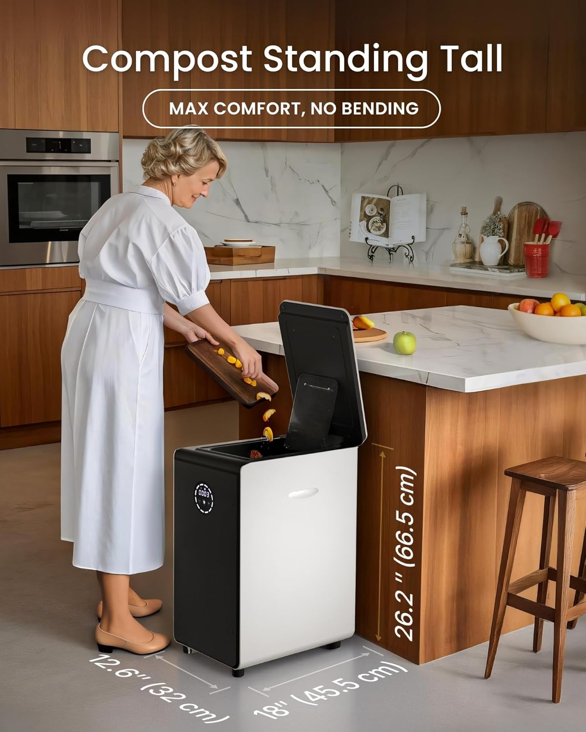 WHISPER-QUIET & ODOR-FREE: Electric Compost Machine, with built-in industrial-grade deodorization system, completely neutralizes odors, while the ultra-quiet operation ensures it never disturbs your home. Enjoy clean air and peace of mind, 24/7