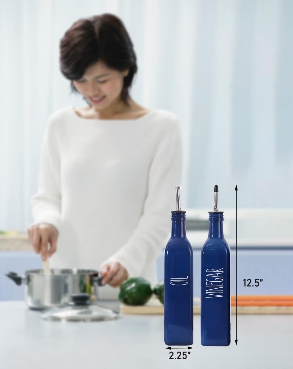 This oil dispenser set is unique navy blue farmhouse kitchen decor. The navy blue color is customized by our American designer, which brighten your house.