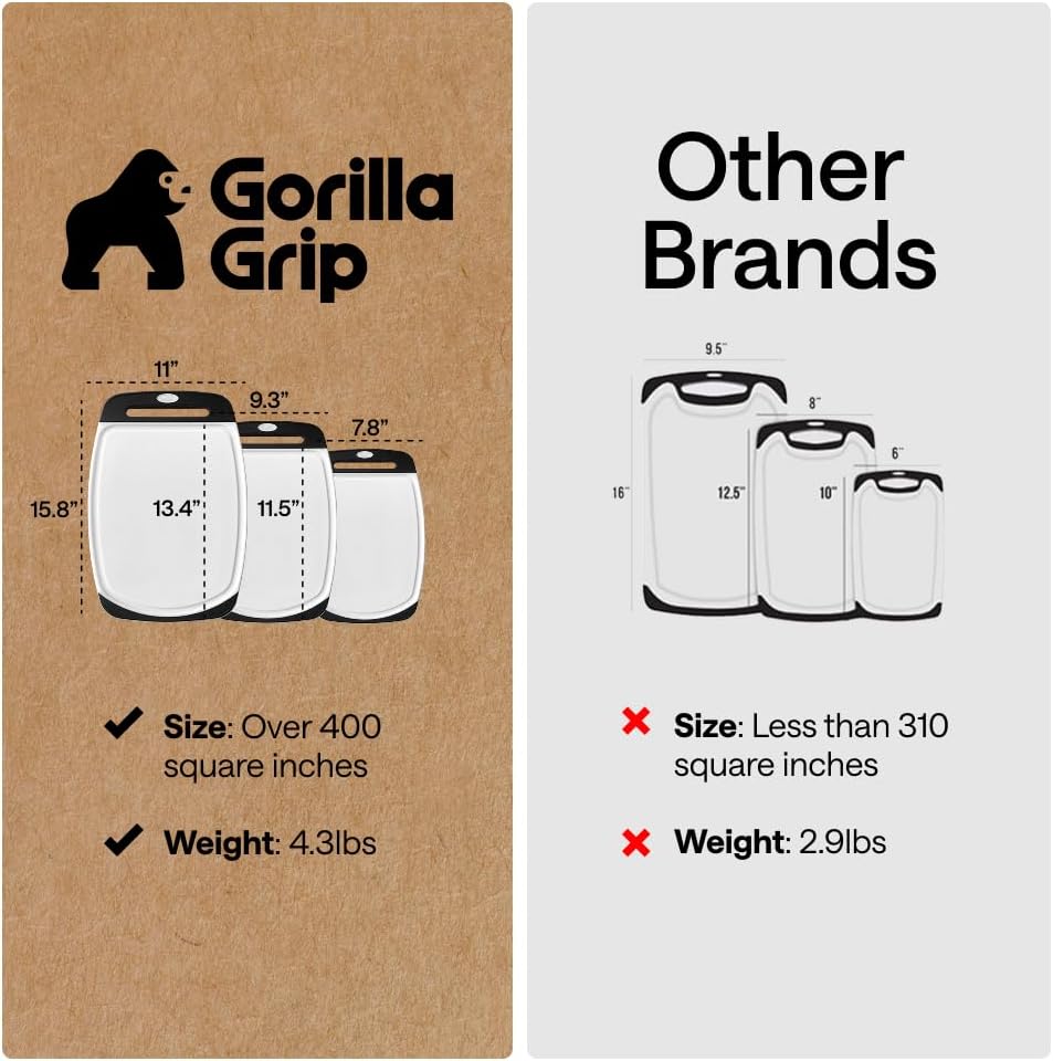 GORILLA GRIP BPA-Free Reversible Kitchen Cutting Board Set of 3, US Designed, Nonporous, Juice Grooves Catch Liquid, Slip Resistant Border, Dishwasher Safe, Durable Large Food Chopping Boards, Black