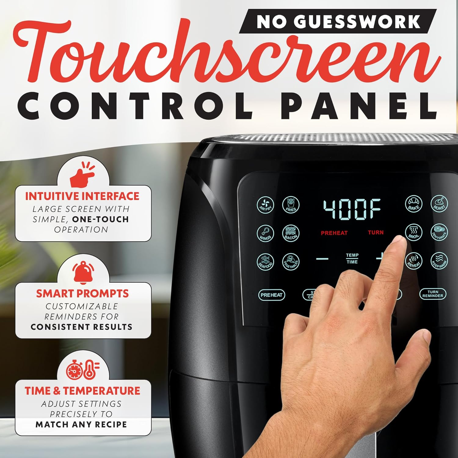 Preset Convenience – 12 One-Touch Functions : Air fry, roast, bake, broil, dehydrate, and more at the touch of a button.