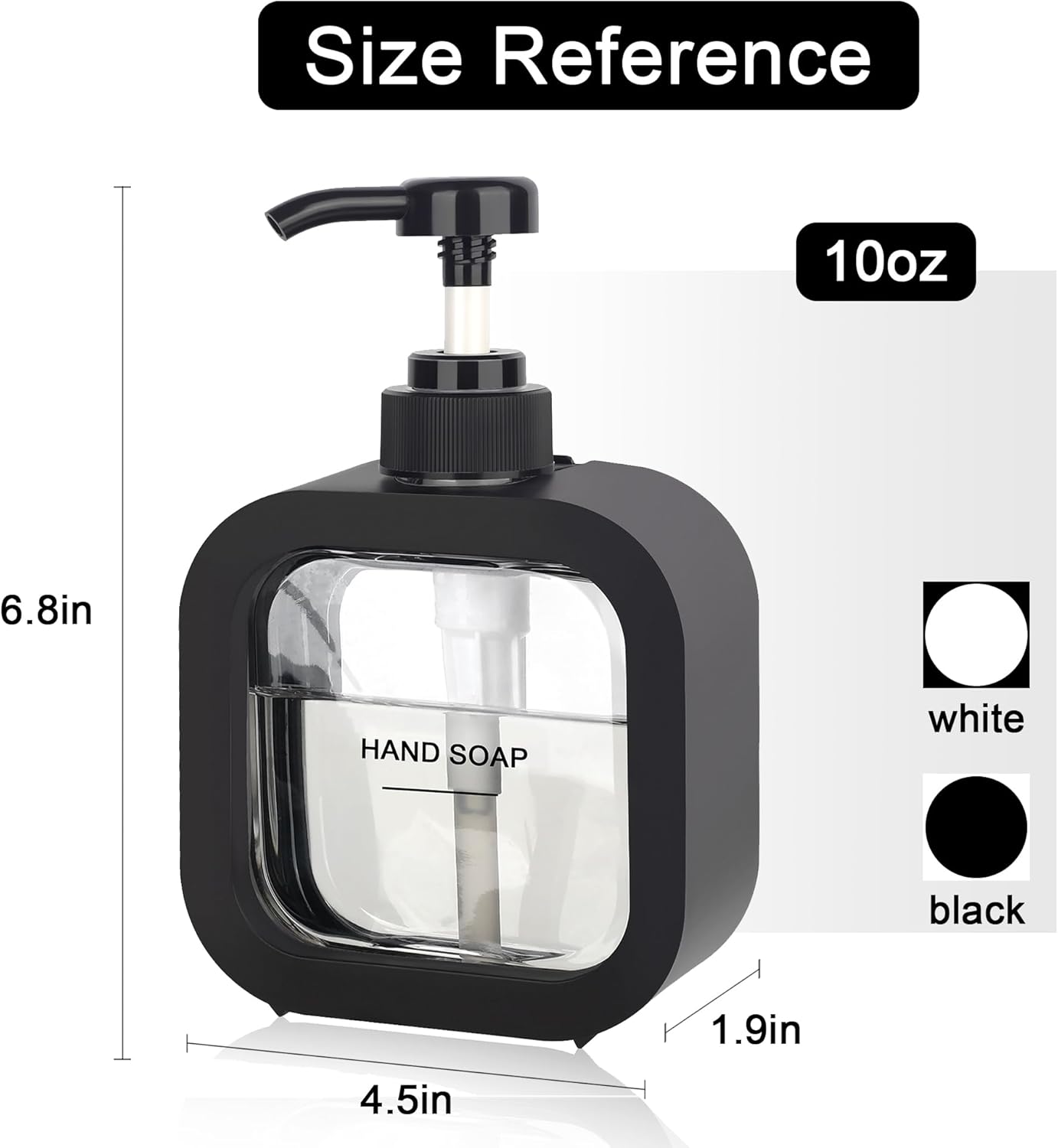 【Space-Saving Design】 Our compact 10oz (6.8 x 4.5 x 1.9in) soap dispenser is tailor-made for smaller spaces, providing a stylish solution without compromising on capacity. Elevate your countertop or sink area with this black bathroom decor.
