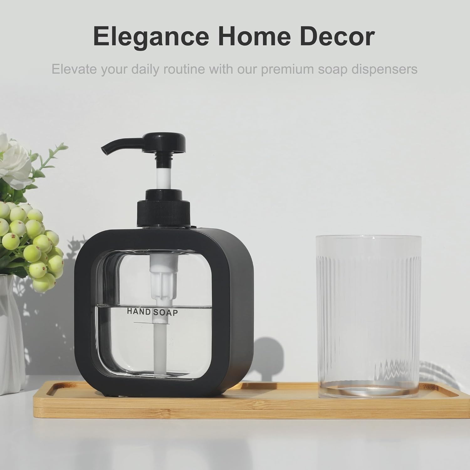 【Elegance Modern Soap Dispenser】 The sleek and contemporary design adds a touch of modern elegance to any setting. The transparent black soap dispenser with a reinforced outer shell not only looks sophisticated but also ensures durability against accidental bumps.