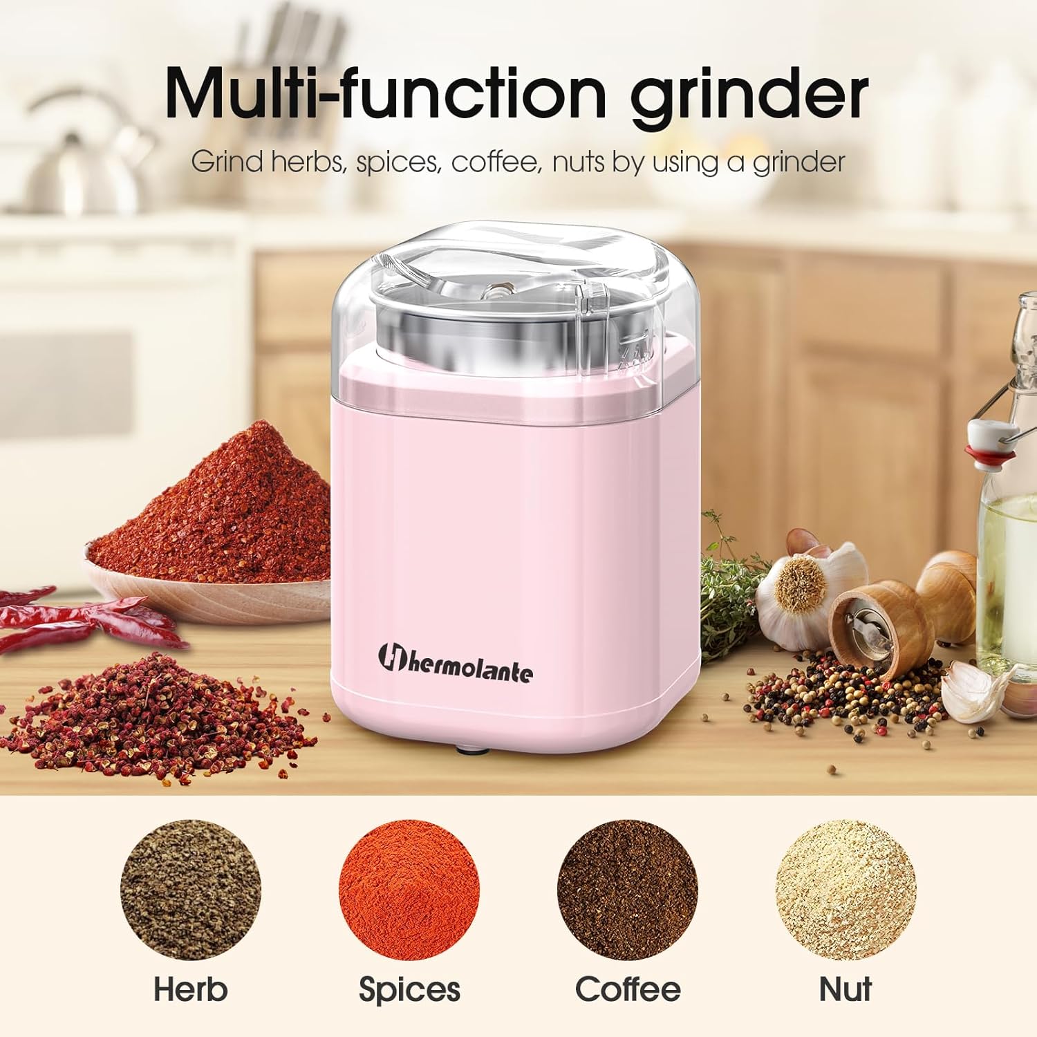 Herb and Spice Grinder, 200W Electric With Stainless Steel Blade, Cleaning Brush – Compact Size 5.11in (Pink)