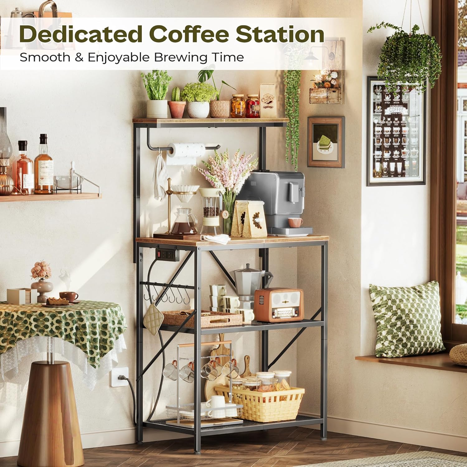【Easy Assembly & Multiple Options】Spend less time setting up and more time enjoying your new bakers rack for kitchen. Each part is clearly labeled, tools are included, and assembly takes under 30 minutes. Available in 5 colors and 4 sizes, so you can find the perfect fit for your kitchen, coffee bar, entryway, or even as a plant stand