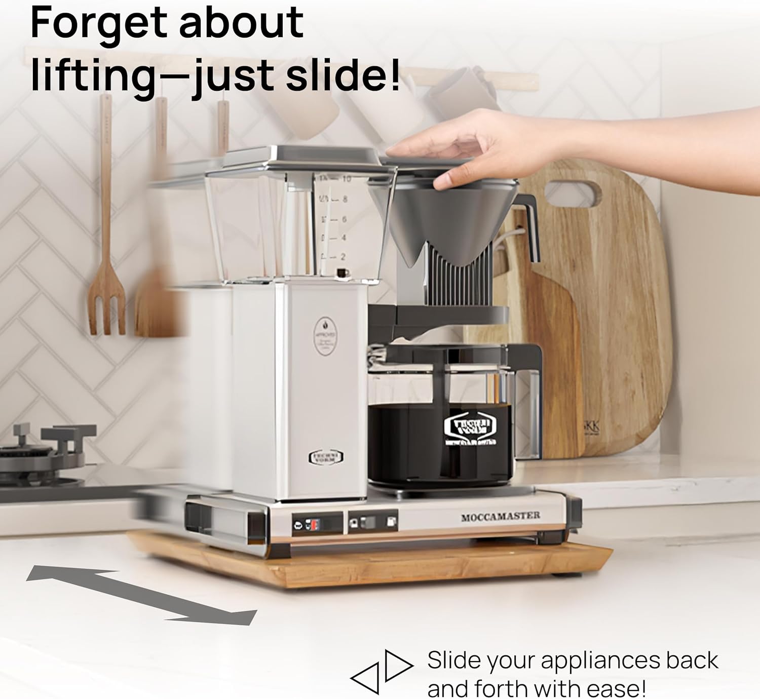 𝐄𝐋𝐄𝐆𝐀𝐍𝐓𝐋𝐘 𝐎𝐑𝐆𝐀𝐍𝐈𝐙𝐄: With the Ibyx appliance slider, you can reorganize your kitchen accessories in style without scratching your countertop or kitchen surfaces. Whether you want to easily access your coffeemaker air fryer from under the cabinet, or you need more counter space to prepare a large meal, Ibyx lets you quickly and easily move appliances