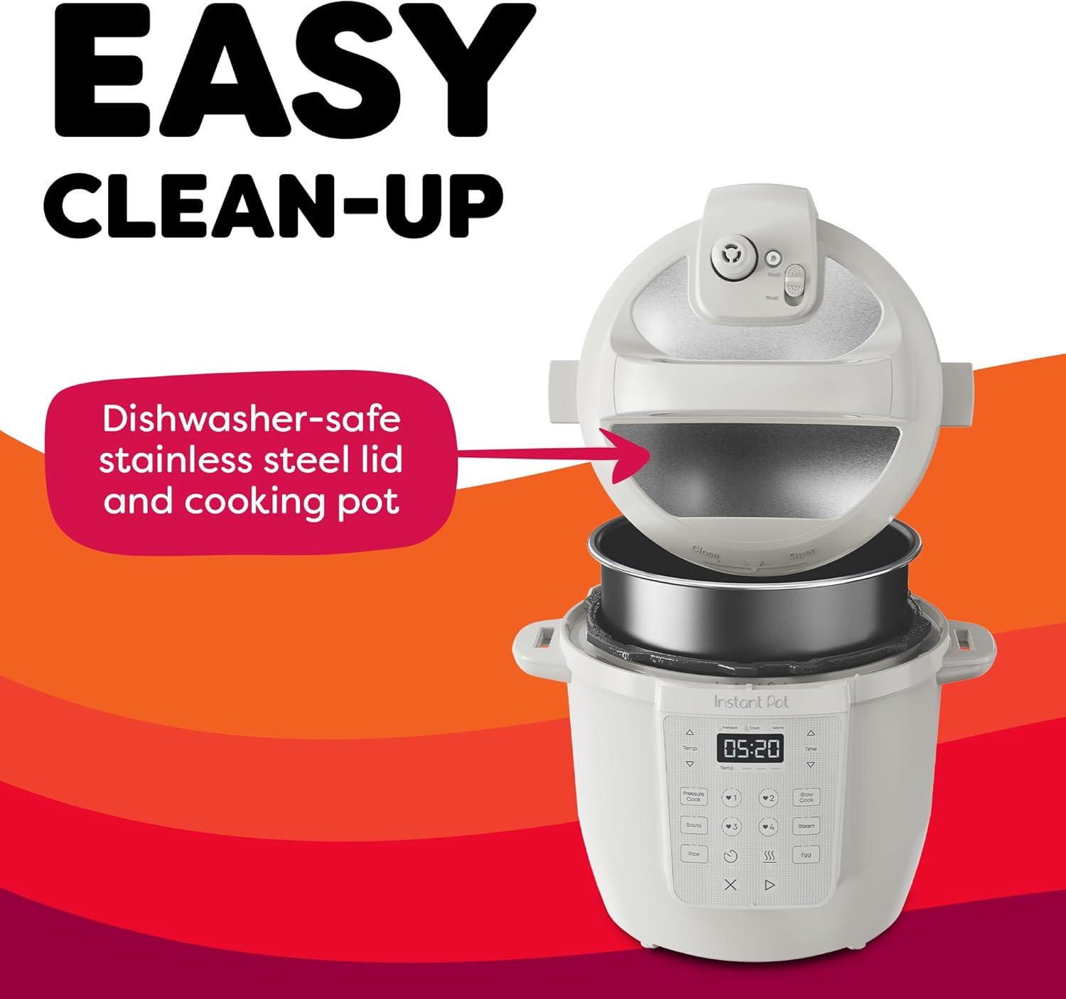 Quick Cleanup: No more fighting about who has to do the dishes. The dishwasher-safe lid and inner pot make clean-up a breeze.
