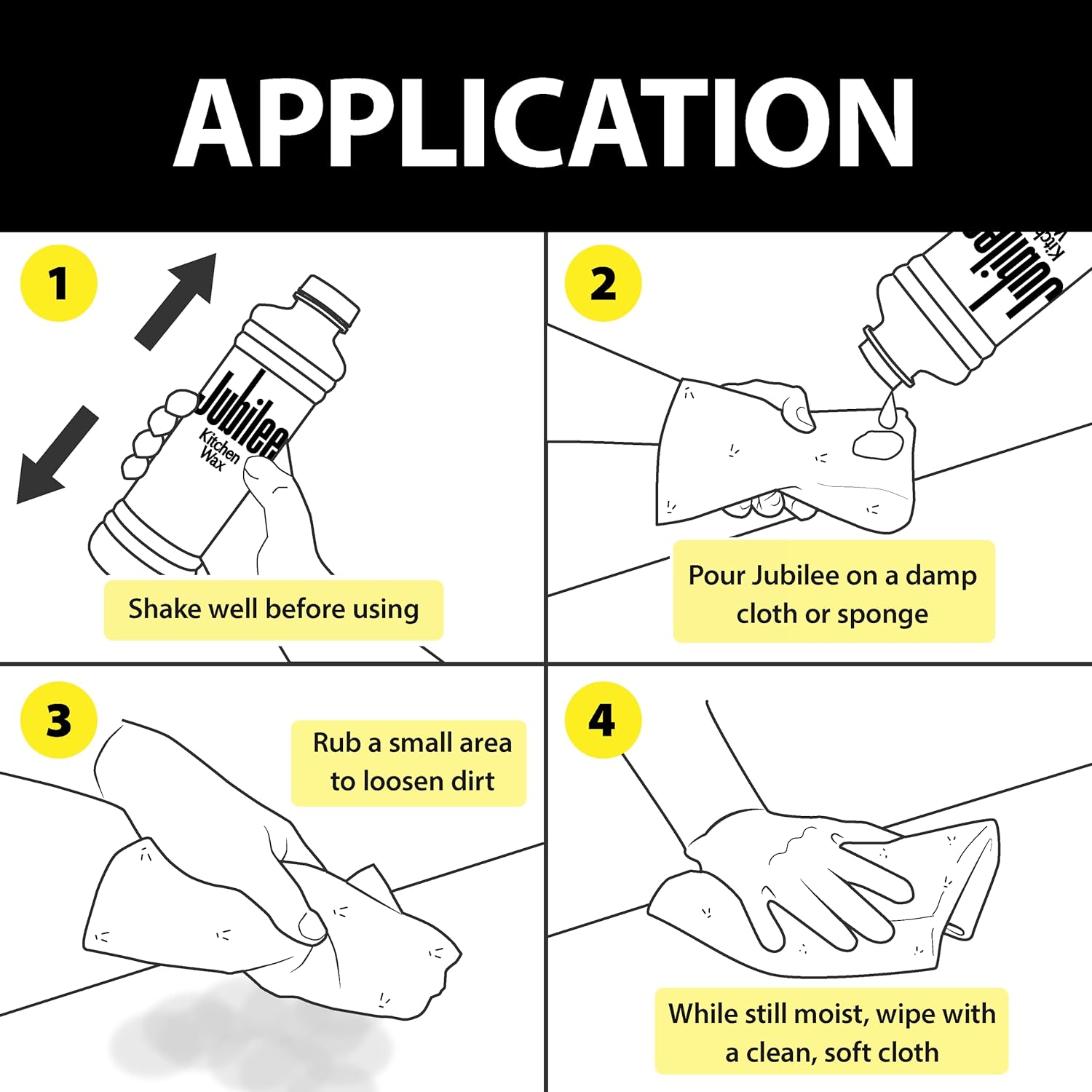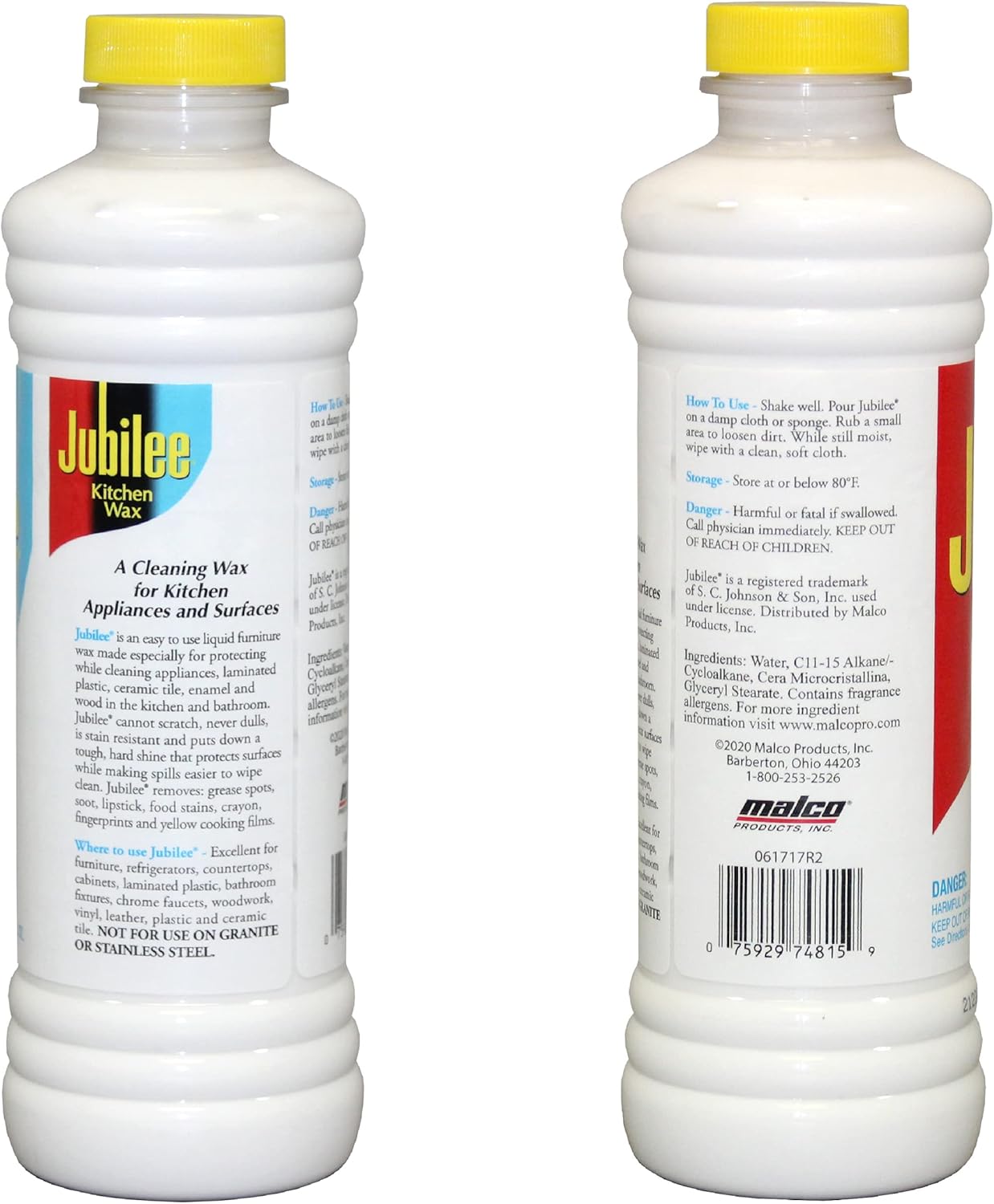 PROTECTS, SHINES, & CLEANS: Achieve a sparkling, polished look on any surface you use it on. Jubilee Kitchen Wax is an easy-to-use liquid furniture wax that not only cleans but also protects and shines appliances, laminate countertops, ceramic tile, enamel, and wood surfaces.