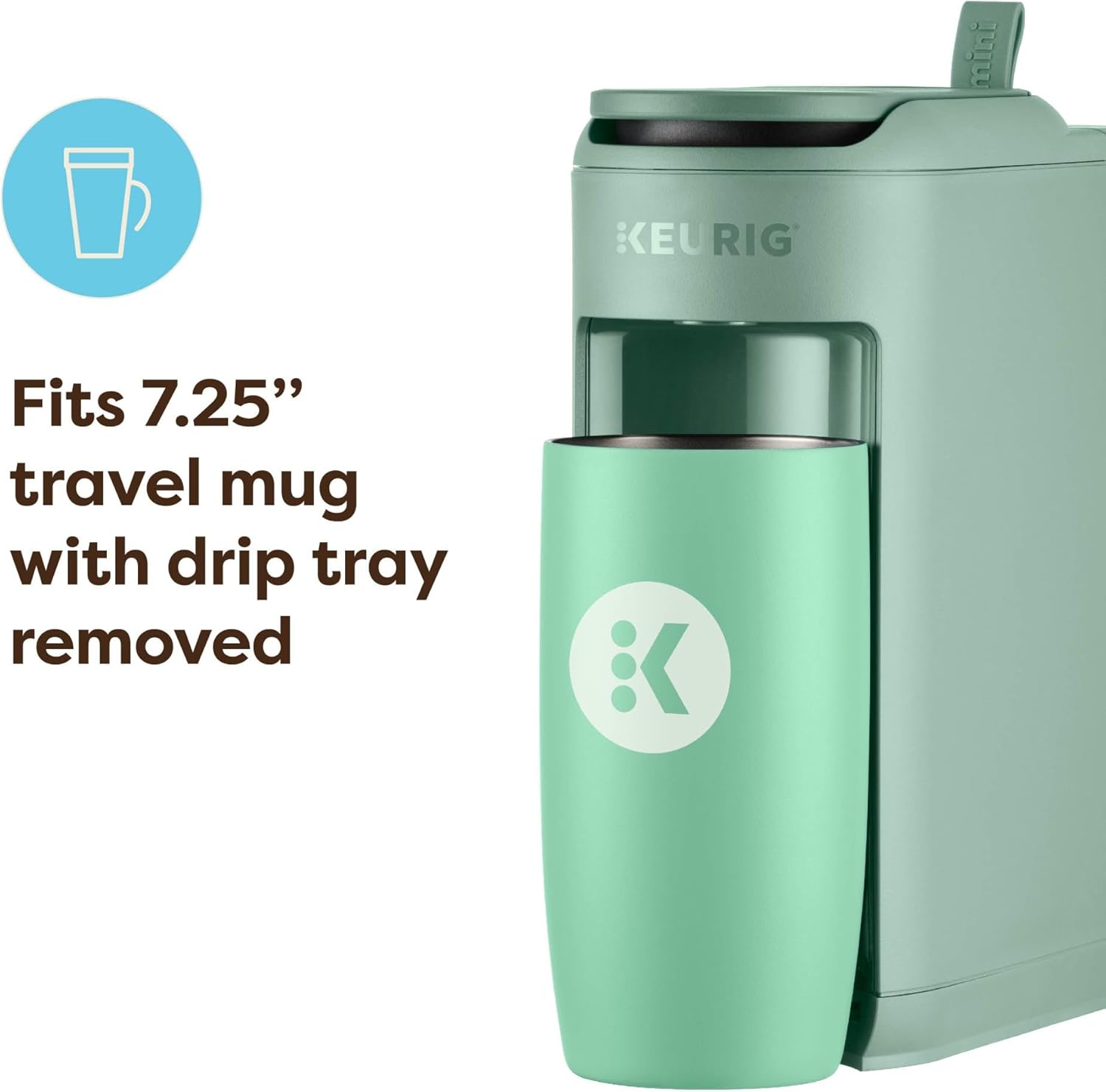 TRAVEL MUG FRIENDLY: Fits up to a 7.25” to-go coffee cup so you can brew and go!