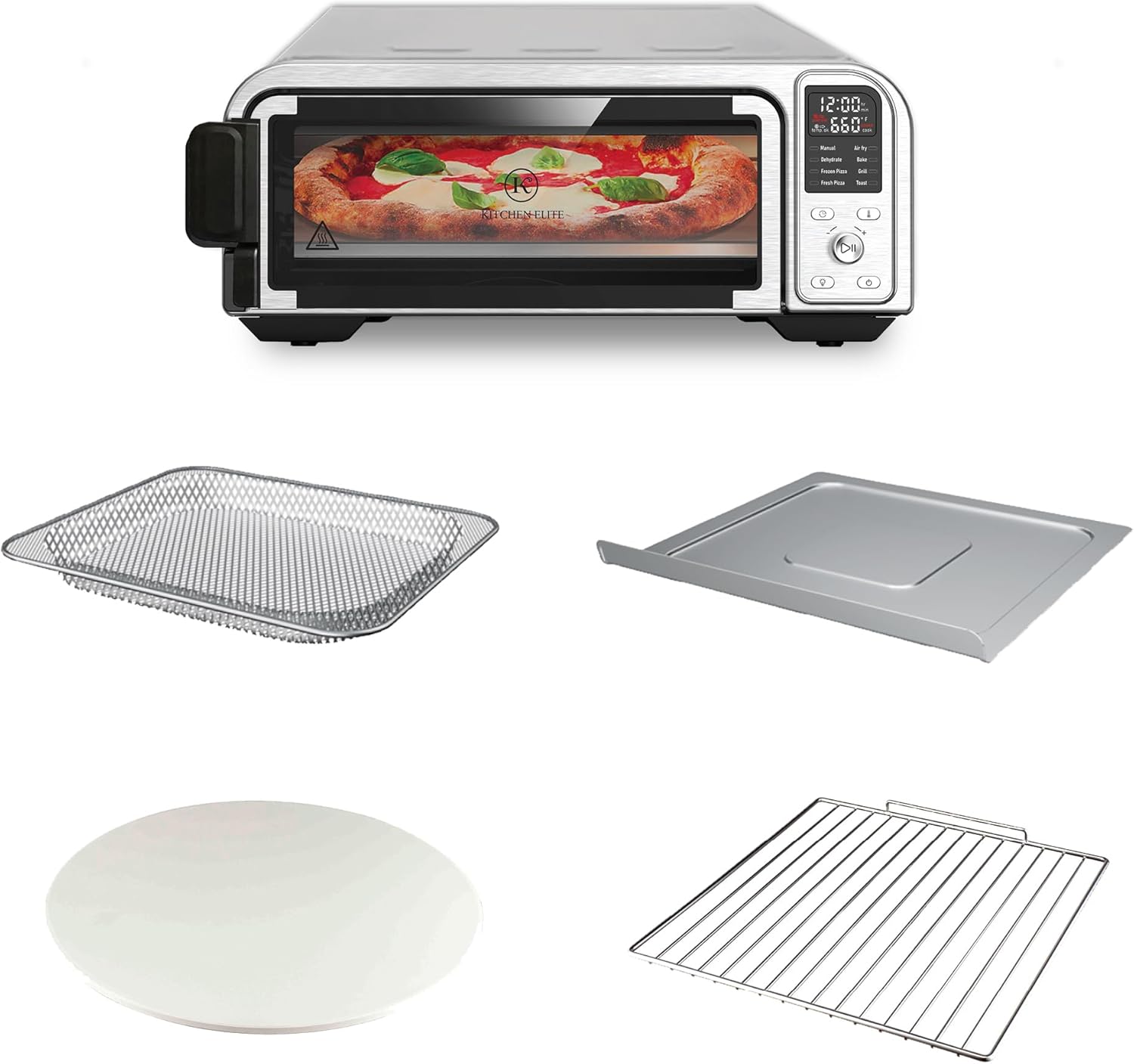 Versatile Cooking Functions: Featuring 8 common functions with preset options, including modes for frozen and fresh pizzas, as well as baking, air frying, and dehydrating. This toaster oven caters to a wide range of cooking requirements