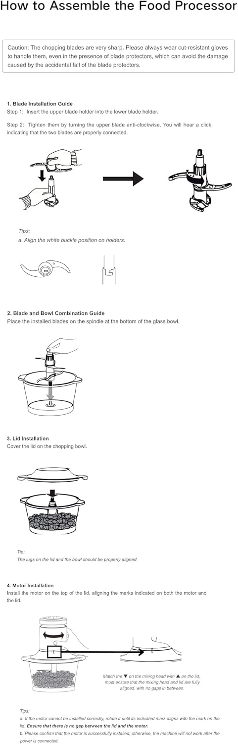 Complete Set & Lifetime After-Sales Support 💙 Includes a 400W motor, 3-cup glass bowl, 1 set S-blades, lid, and non-slip mat. Works perfectly as a procesador de alimentos, meat processor, meat blender, or picadora de carne. Comes with lifetime after-sales support for worry-free use. If you have any product issues, please let us know— we’ll assist you promptly.