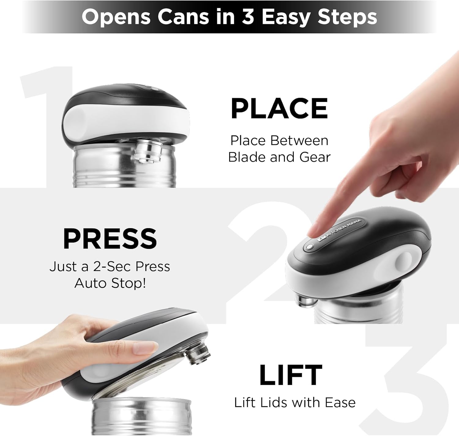 Ergonomic Design: Streamlined shape makes the can opening process handier; magnet-attached battery compartment makes changing new batteries easy on the go; batteries not included