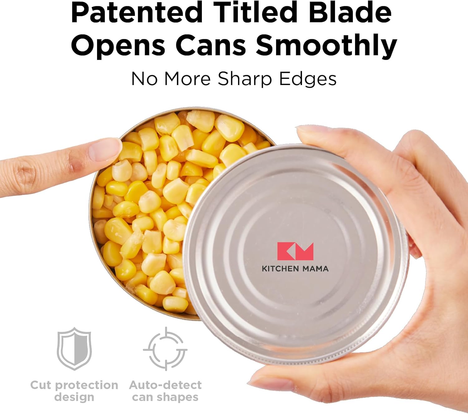 Ultra-Safe: No more cut fingers; patented tilted blade detects any can shape and leaves smooth edges; exclusive cut protection feature turns the automatic can opener off in case of accidental cuts