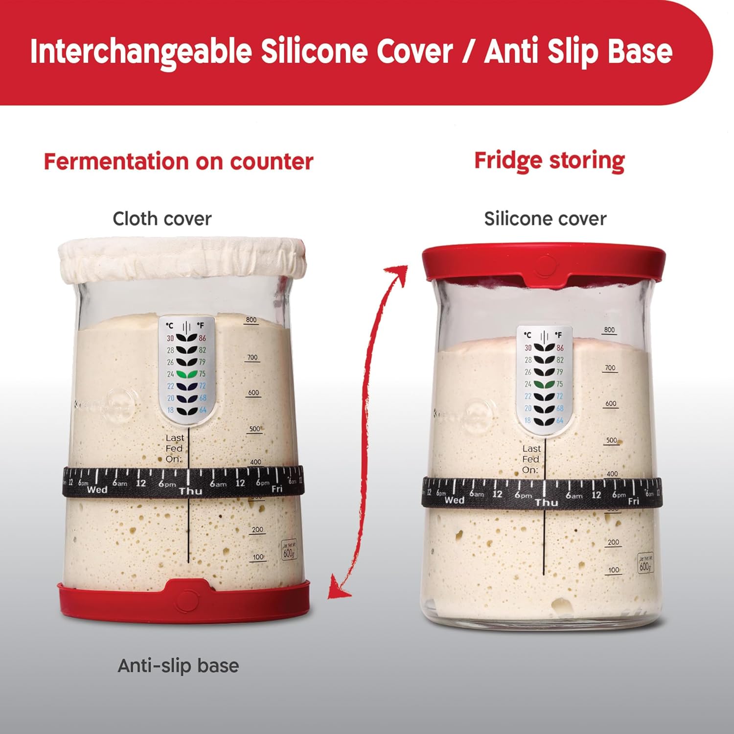 Experience The Ultimate In Sourdough Care – Our starter kit comes with a silicon cover for fridge storage that doubles as unti-slip base for your kitchen counter during fermentation while using the cloth cover.