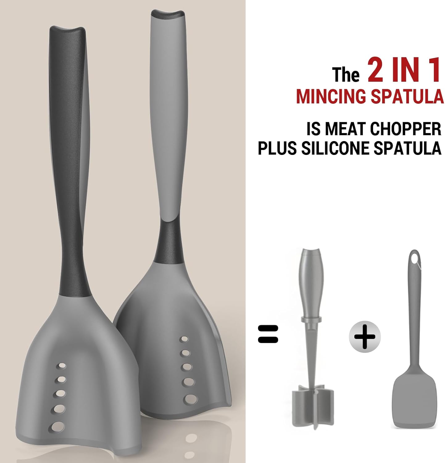 [2 in 1 Mincing Spatula] This product is equivalent to a meat chopper plus a silicone spatula, combining chopping, draining oil, scooping, and serving functions in one, usable in various scenarios. You can easily mash and cook ground beef, and also use it to mash eggs, avocados, or tomatoes.