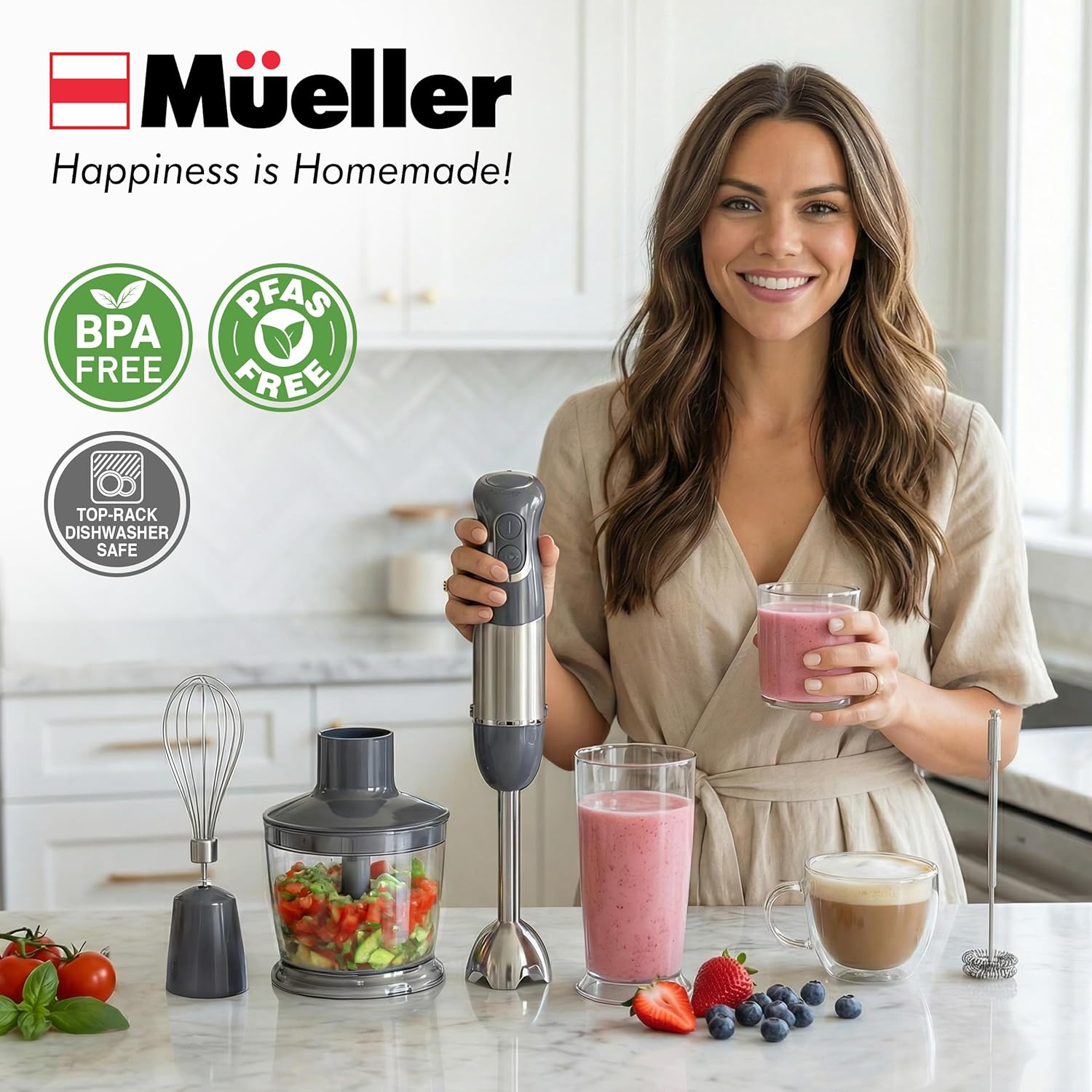 MULTI-FUNCTIONAL MASTERY – Beyond blending, our comprehensive set includes a Snap-on Whisk attachment, Frother attachment, Beaker (20 fl. oz) and Twist and Lock Chopper (16oz) with removable blade, redefining the 5-in-1 kitchen appliance concept. The chopper acts as your mini food processor with the perfect lid to eliminate mess and tearing eyes when chopping white or red onions!