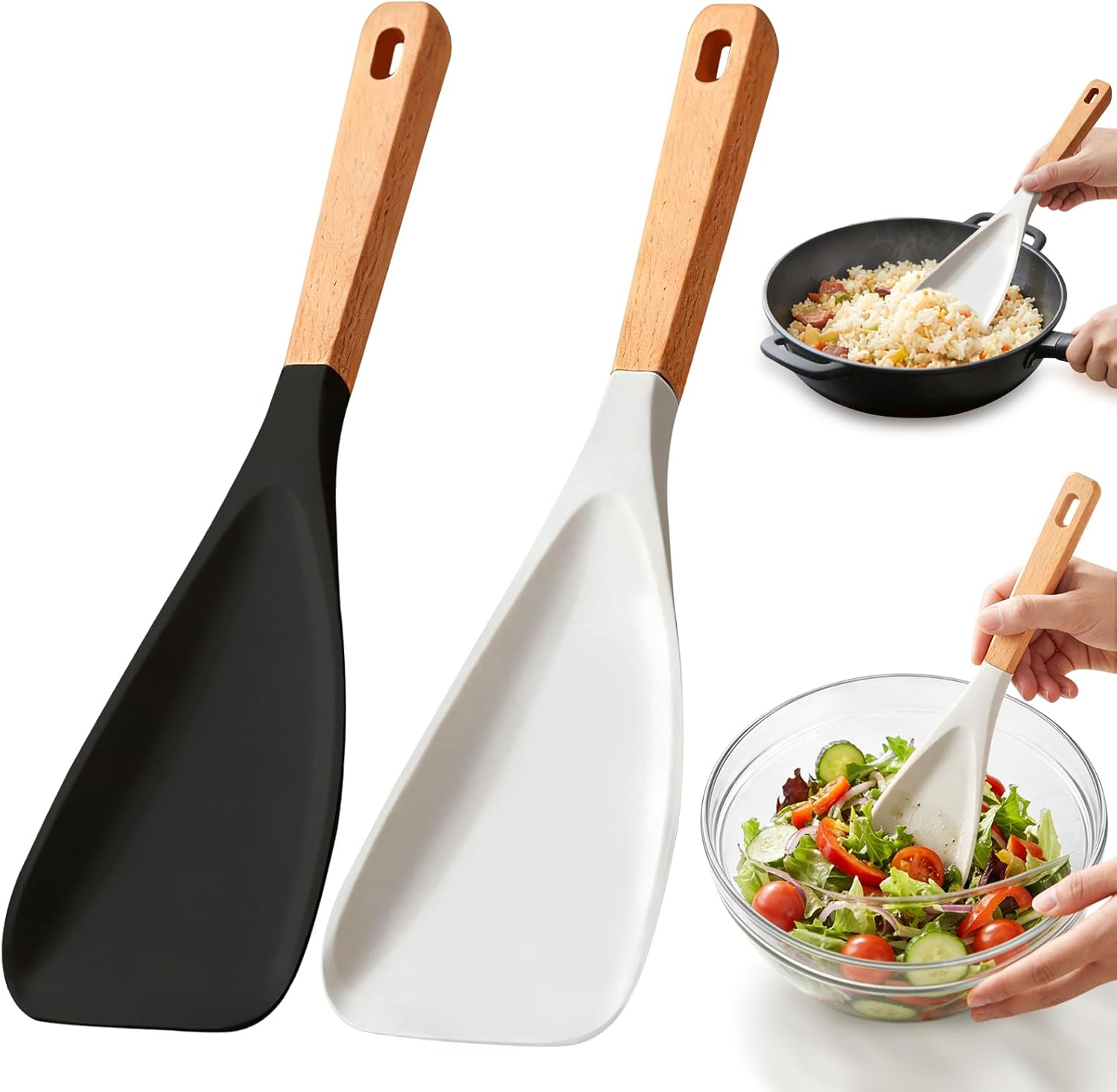 Multifunction Spatula Cooking Spoon,Long Head Silicone Salad Spatula Spoon,Cedar and Ash Spoonula with Wood Handle Cooking Utensil Kitchen Gadgets