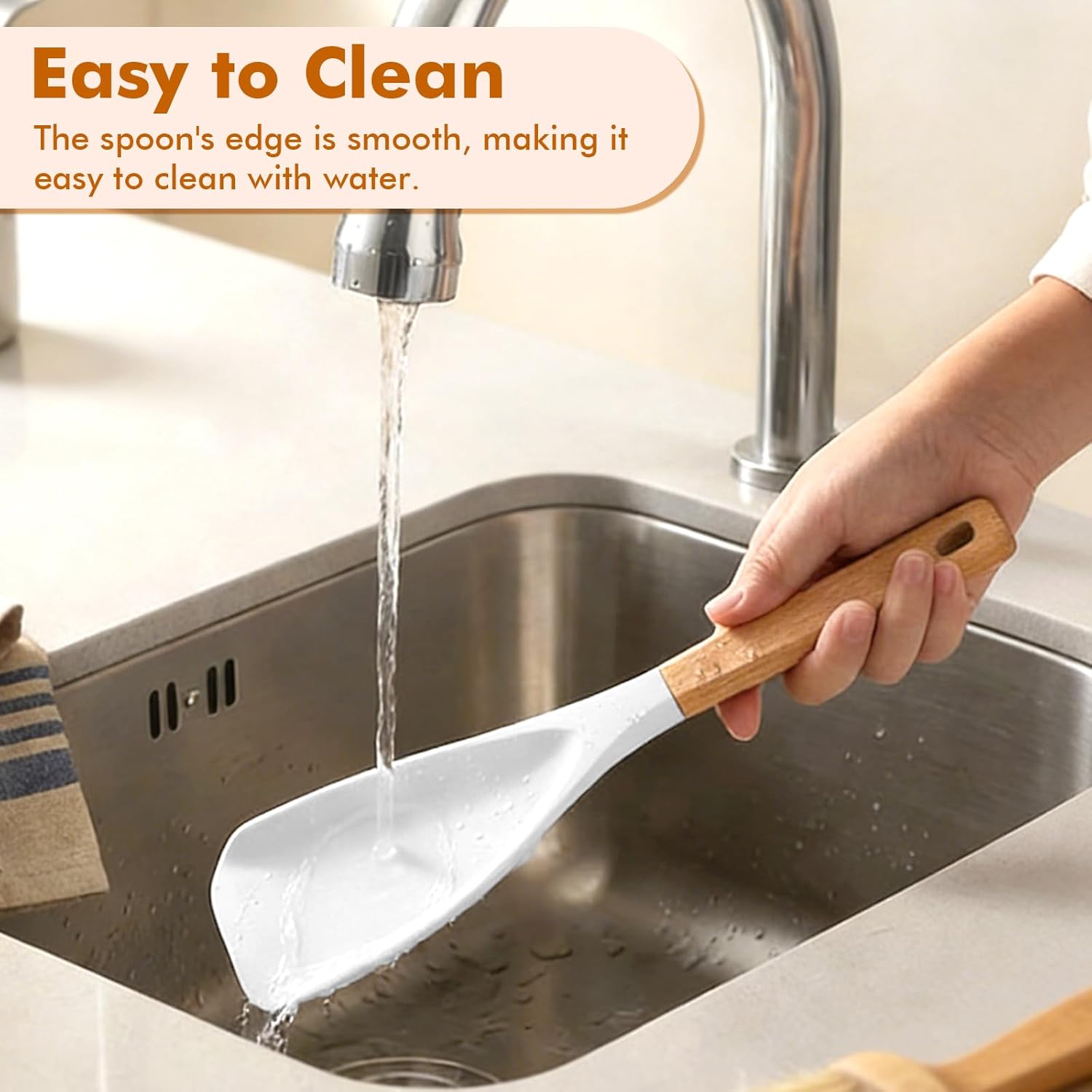 Easy to Clean: This cooking spoon is made of durable, high-quality food-grade silicone, which is safe and non-toxic. Its spoon surface is designed for long-term use and is easy to clean. For optimal maintenance, it is recommended to wash it by hand to maintain tool performance and extend its service life