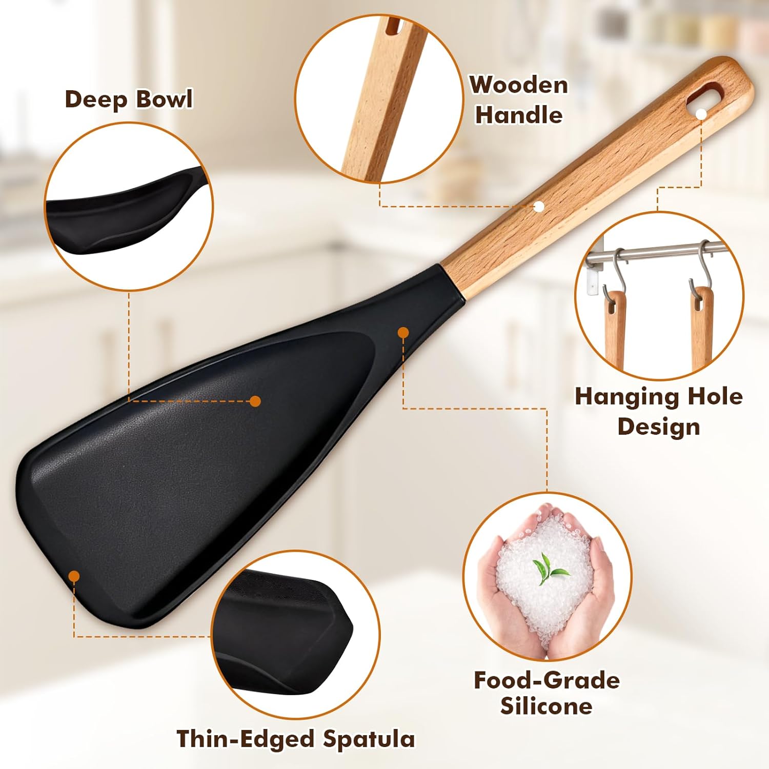 Heat-Resistant & Durable: Our silicone cooking spoon is specially designed to withstand high temperatures up to 446℉ (230℃), making it ideal for all your cooking needs, whether it’s stirring, scooping, or serving