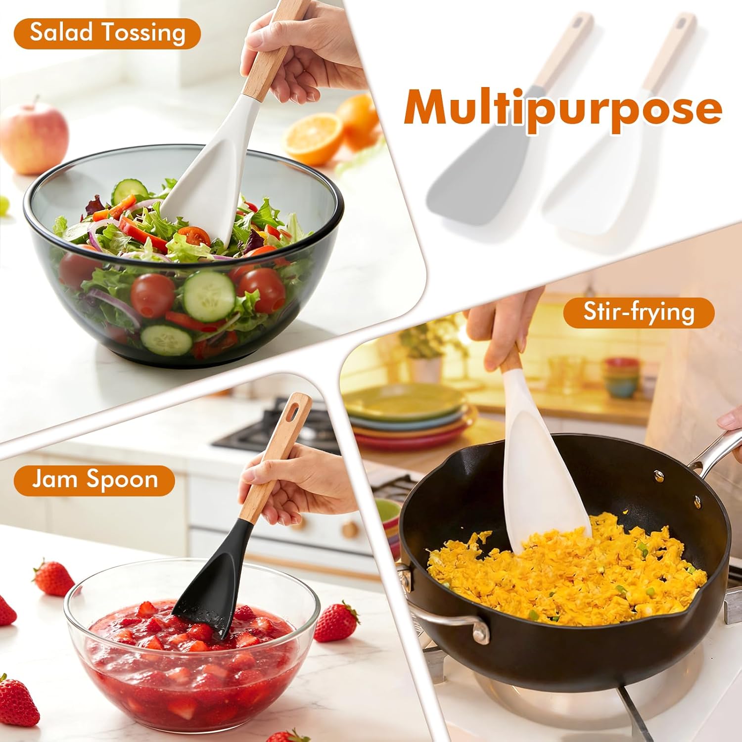 3-in-1 Multi-functional Spoon Spatula: This versatile spatula combines the functions of a spatula, spoon, and scraper, making it ideal for stirring, scooping, and scraping in the kitchen. This spatula is a must-have for every home chef, easily handling various cooking tasks. Its compact design and versatility make it a practical choice among your kitchen gadgets!