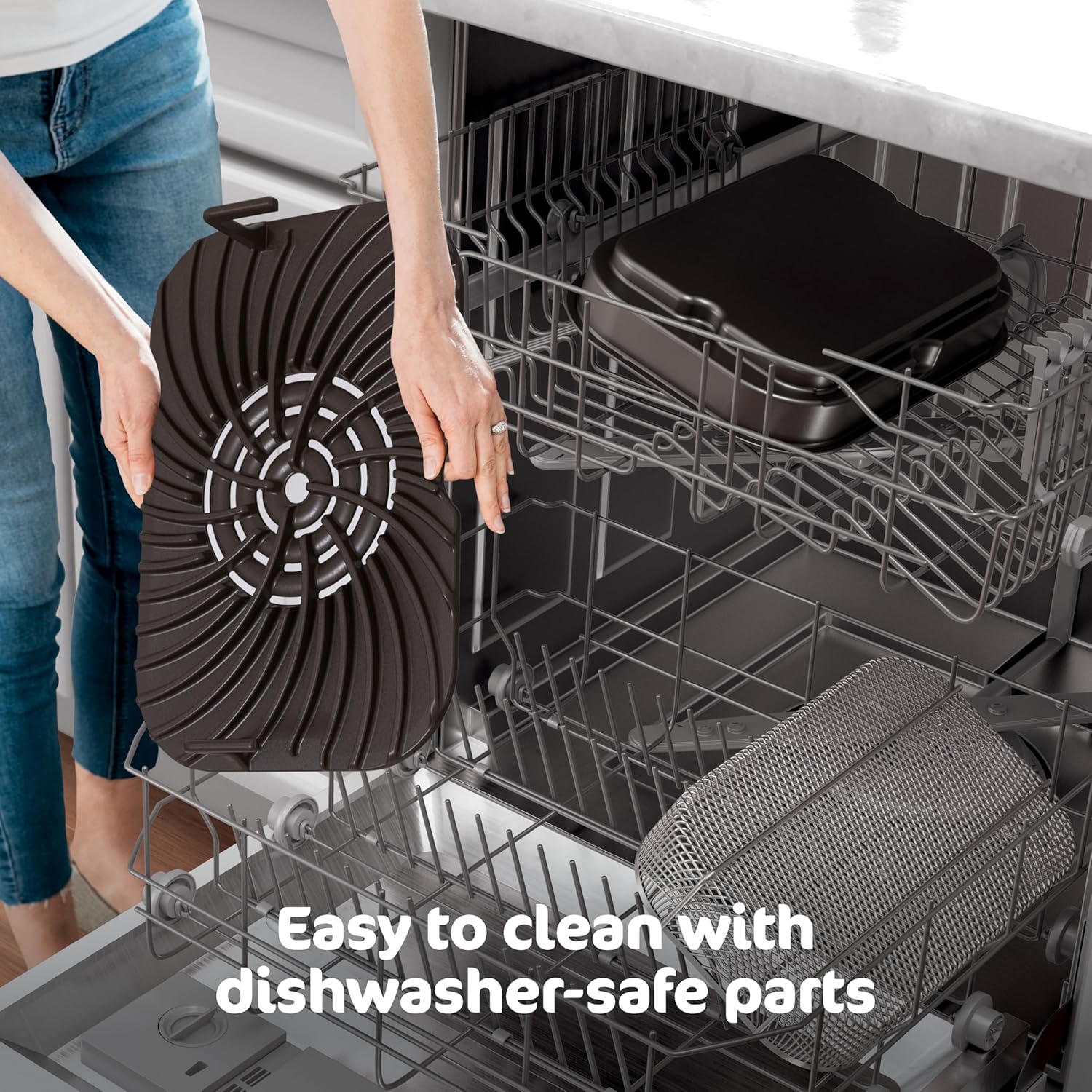 EASY-TO-CLEAN: The ceramic-coated, removable grill grate, crisper basket, and cooking pot are all dishwasher safe, easy to clean, and PTFE/PFOA-free.