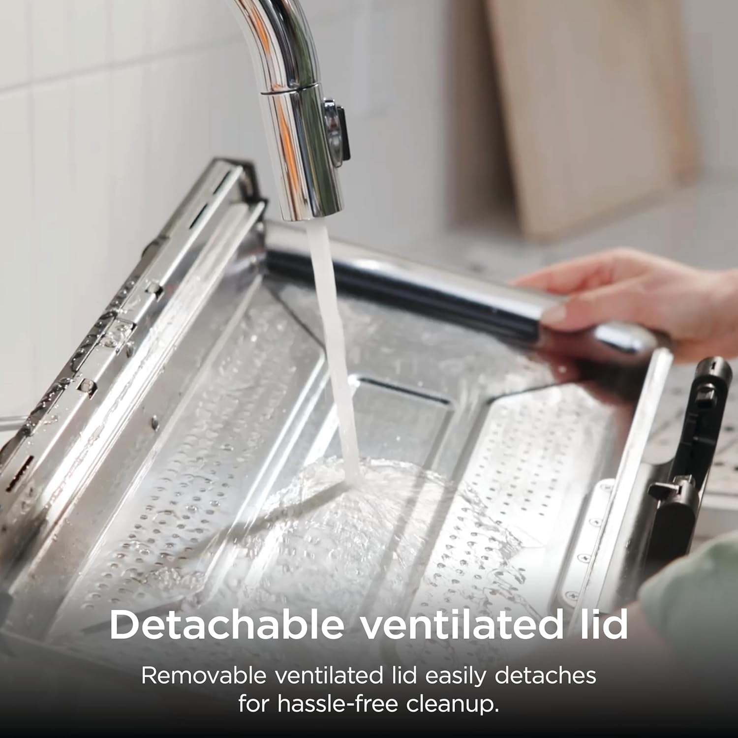 DETACHEABLE VENTILATED LID: The ventilated lid reduces splatter and helps maintain grease control. It easily detaches for a hassle-free cleanup.