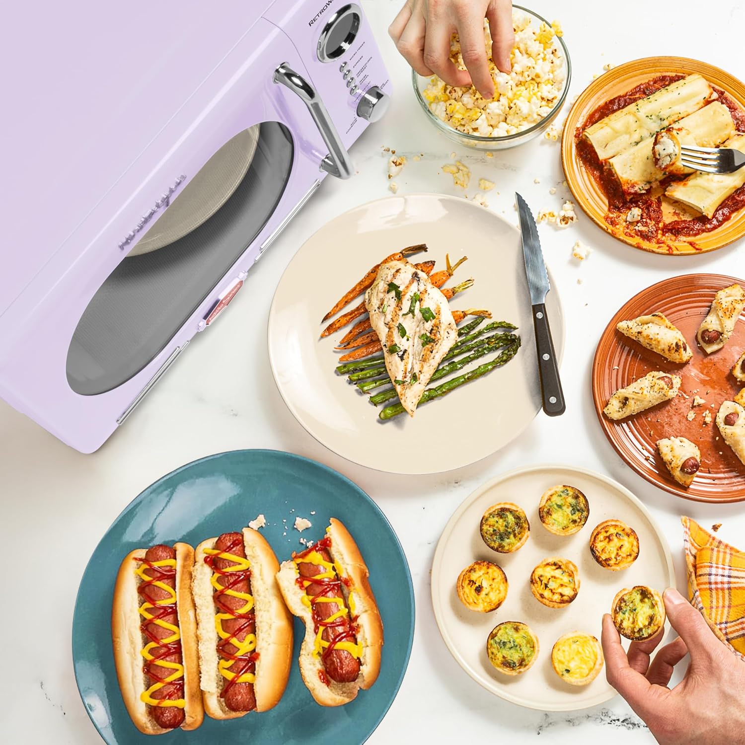 With a beautiful and sleek retro design, this microwave is sure to stand out in any kitchen. It features 12-pre programmed cooking settings and a bright LED display, making usability simple. Five power levels and 700-watts of power are perfect for reheating leftovers or cooking food.