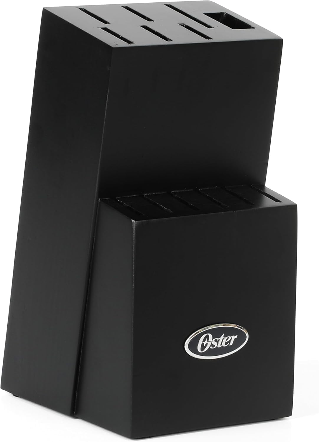 Cut through the challenges of everyday food prep with the Oster™ Lindbergh 14-piece Knife Set. Stainless steel cutlery set features a precision-stamped construction for easy cutting and slicing. Perfect for everyday food prep, each knife is designed for long-lasting service with its high resistance to rust and corrosion. Superior fine and serrated blades yield even portions and slices of any ingredient – just what your signature recipe calls for. Store the knives safely in the hardwood storage block when not in use. Park it on the countertop to place the knives within your reach when it’s time for another round of creative culinary work. Hand wash only.